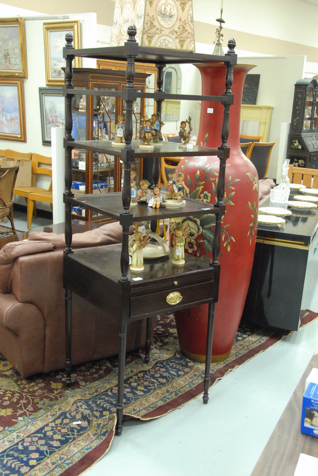Mahogany tagre with five shelves, a slide, and a drawer, signed Smithsonian Institute