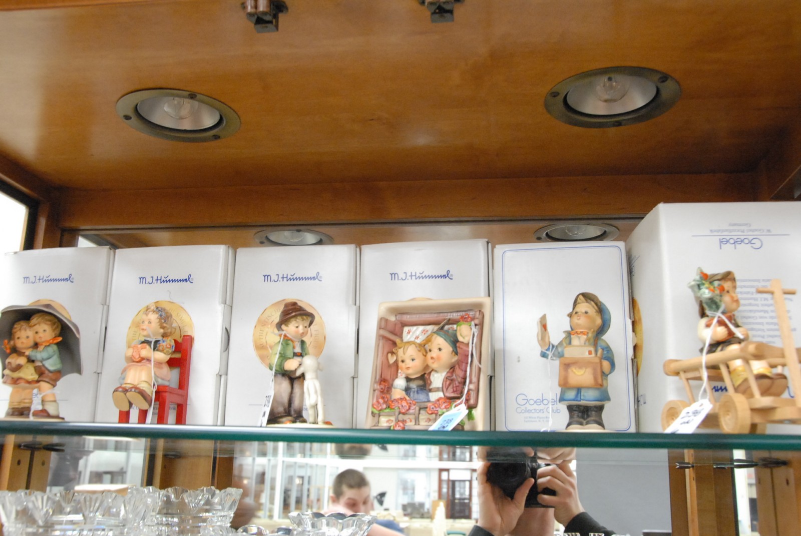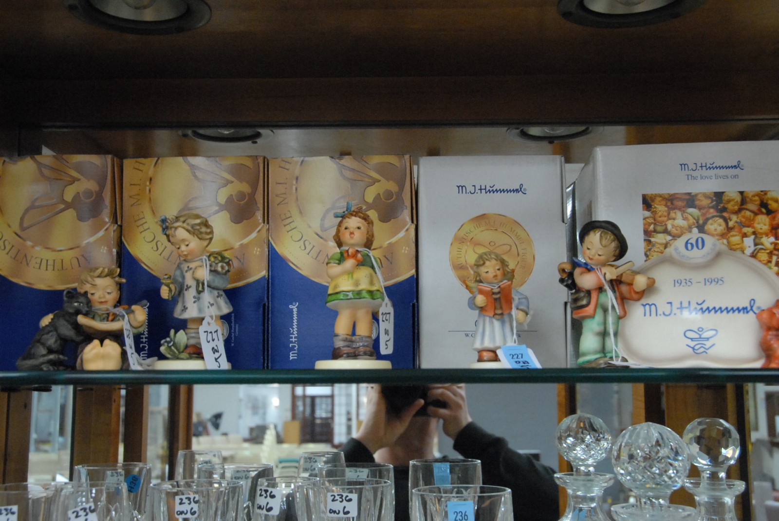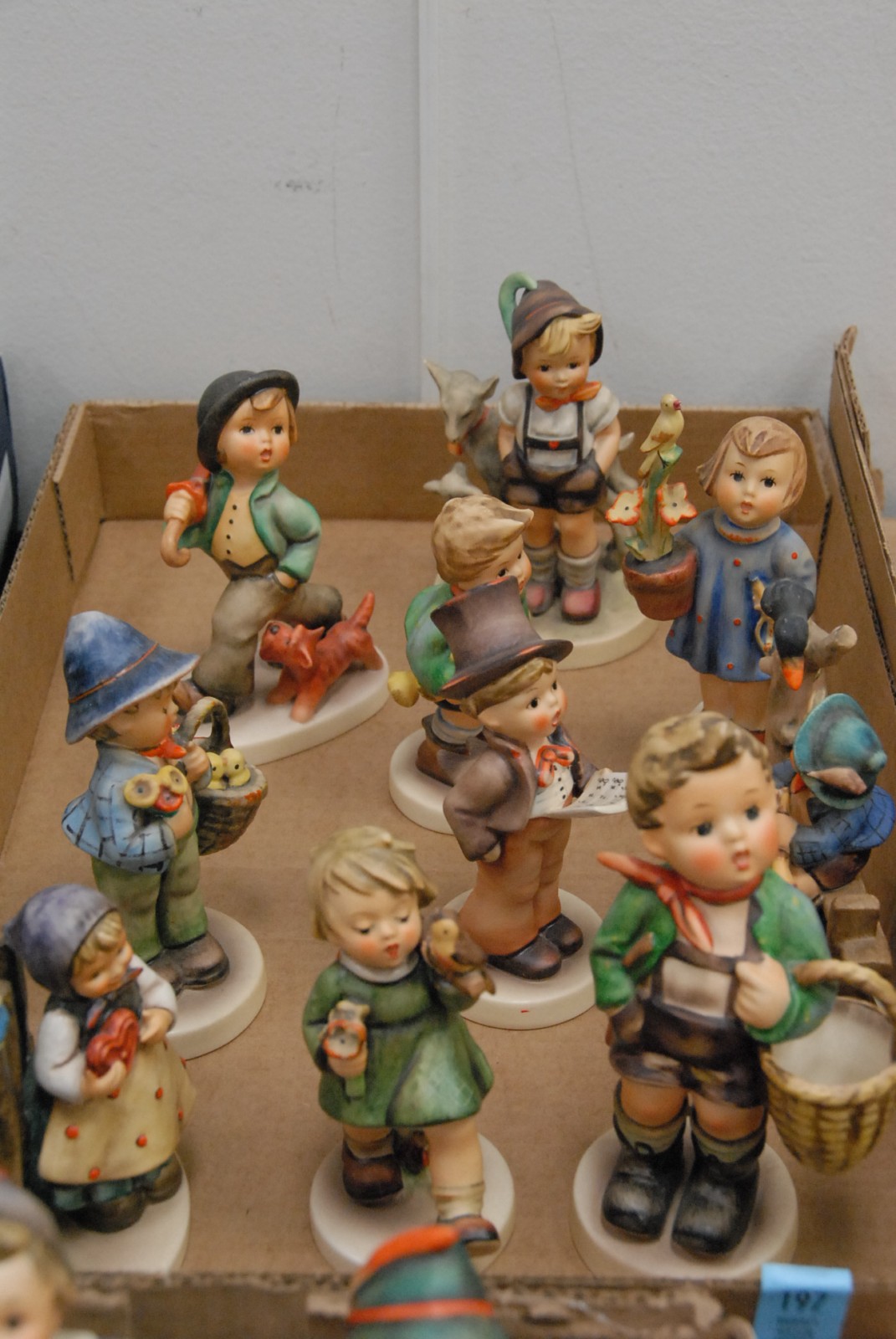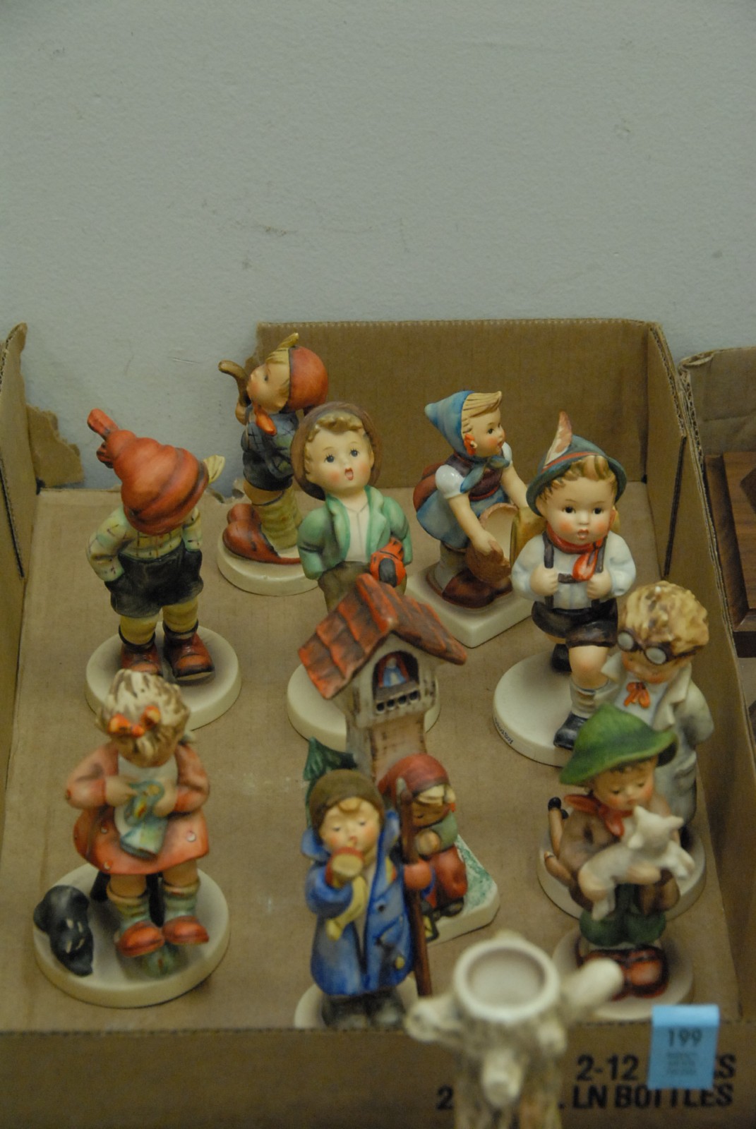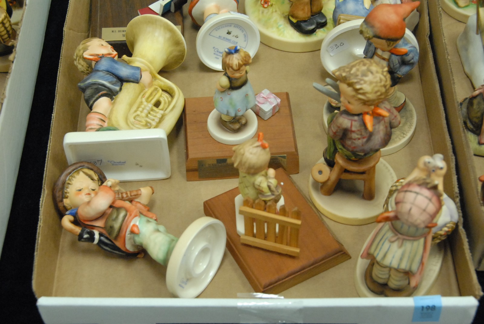 Four Hummels with original boxes, including Nimble Fingers, Practice Makes Perfect, To Keep You Warm, and A Tuneful Trio