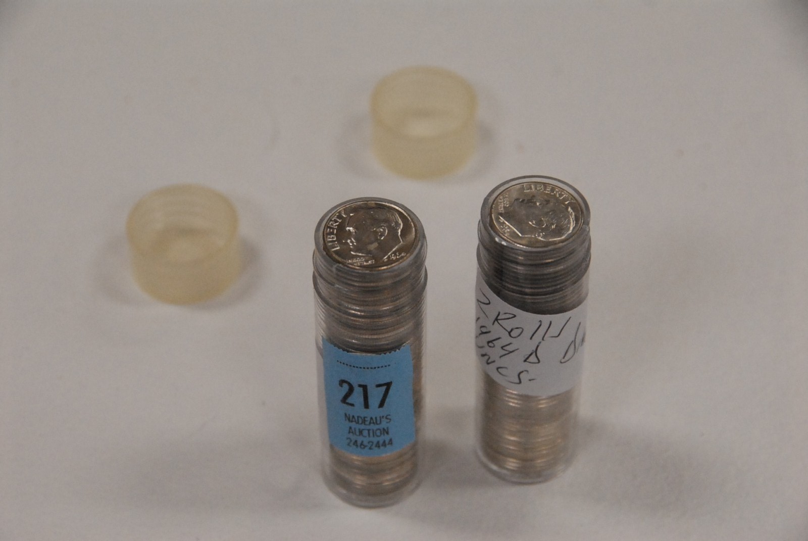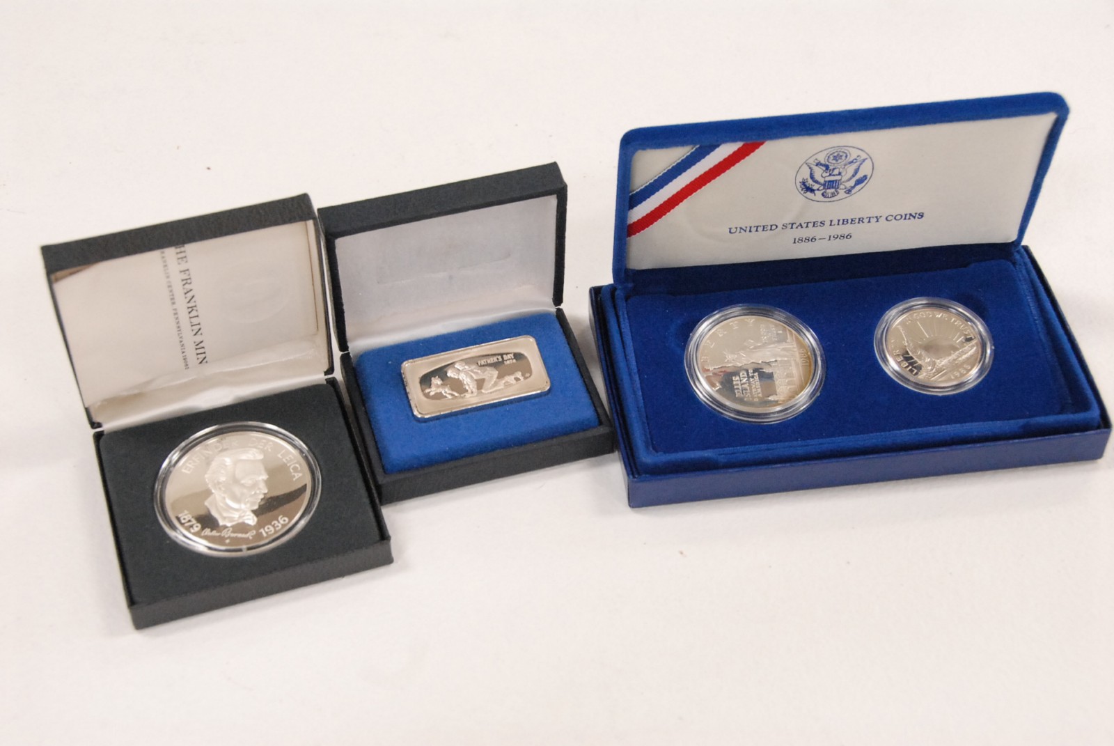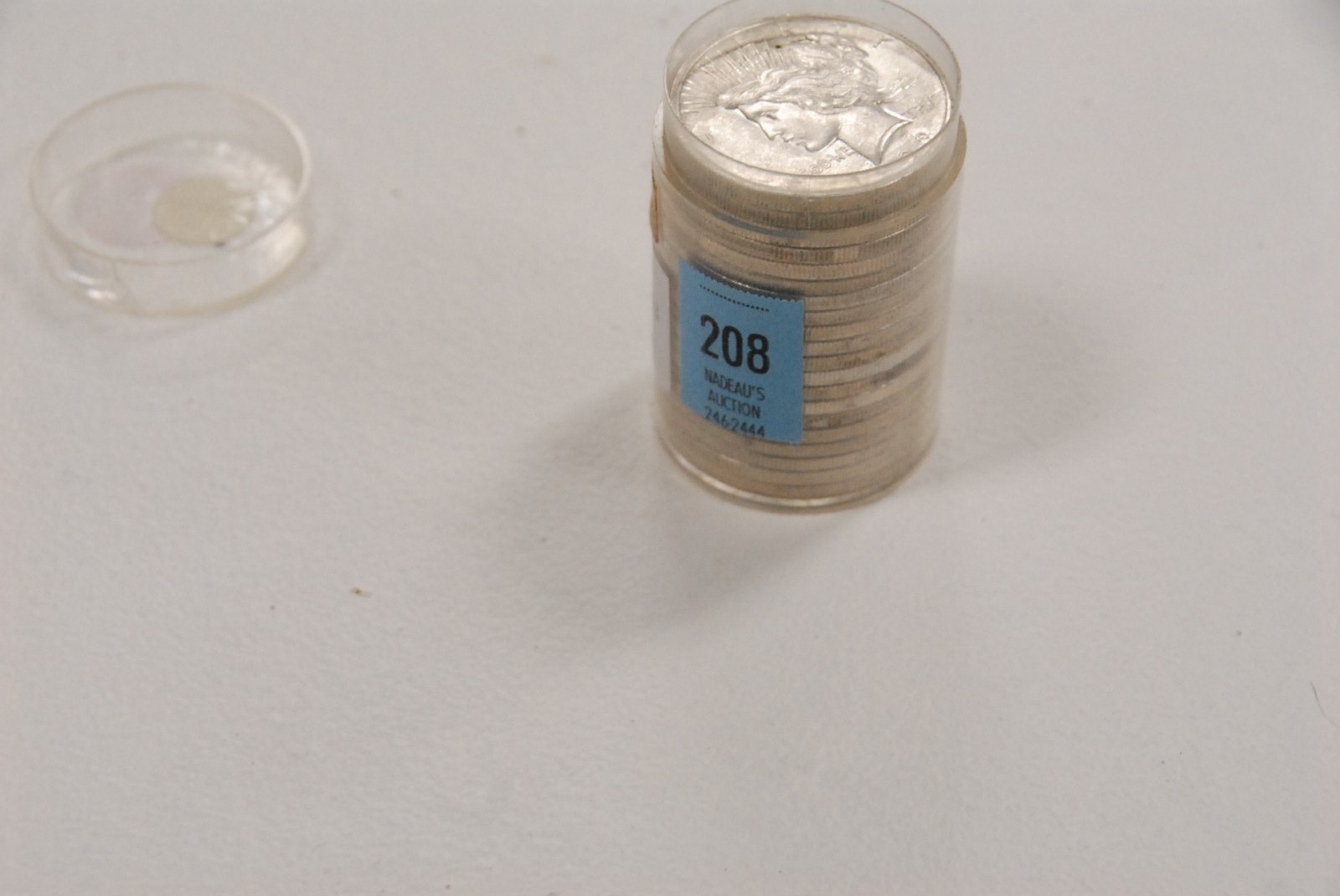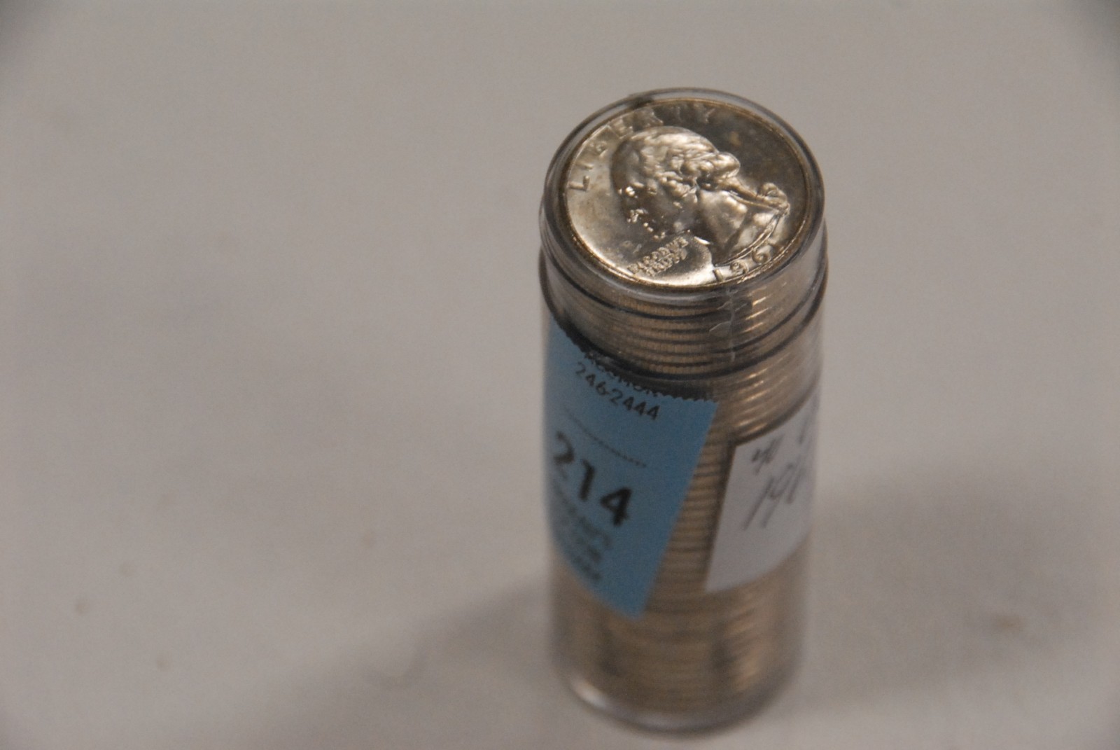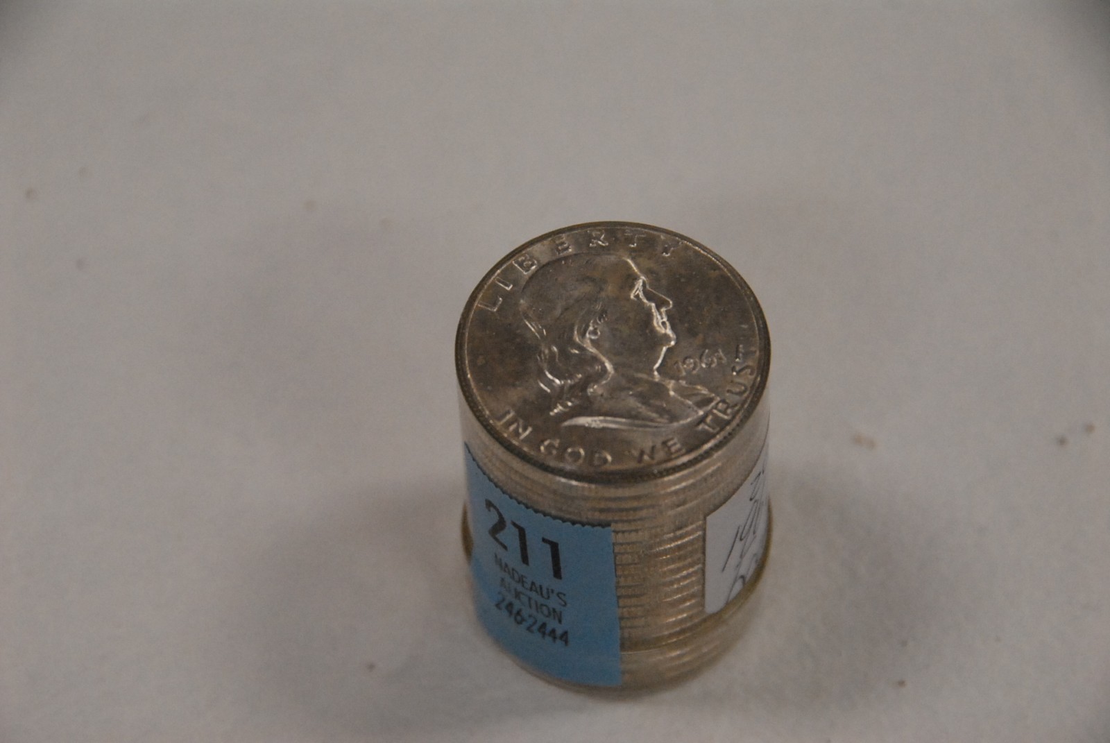 Bag lot of silver coins, twenty six Kennedy half dollars 1965 to 1969, two 1964 mint sets, thirty one silver quarters