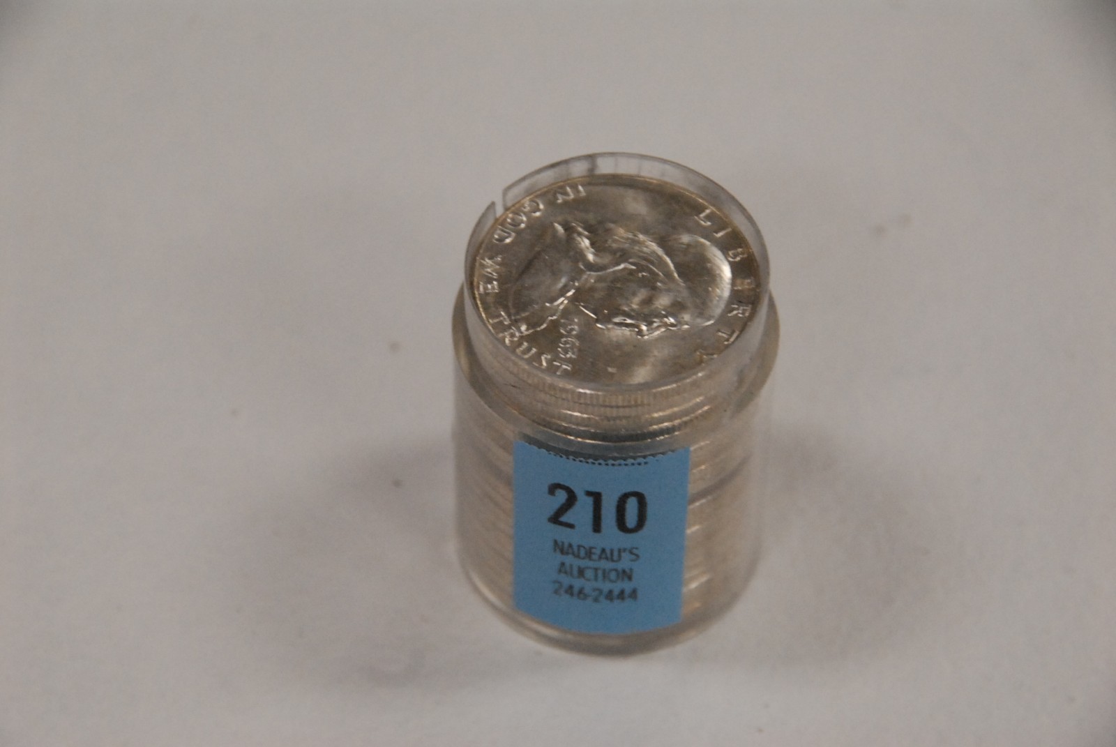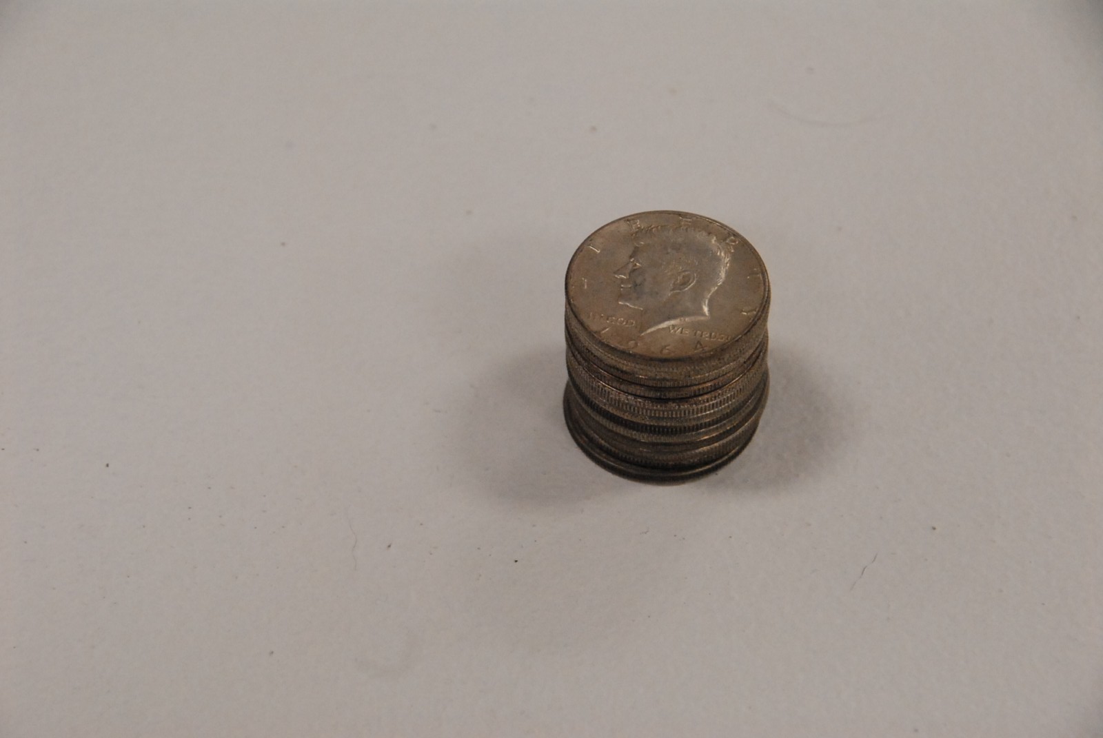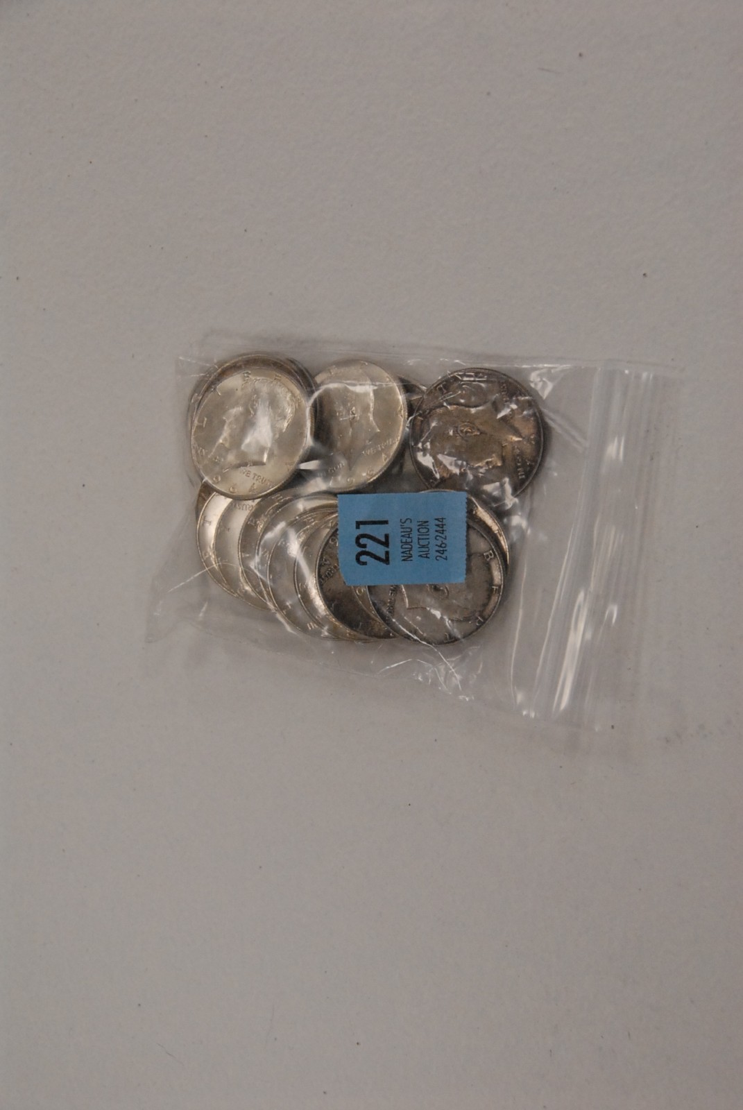 Bag lot with fourteen Kennedy half dollars, seven 1964, six 1966, one 1965