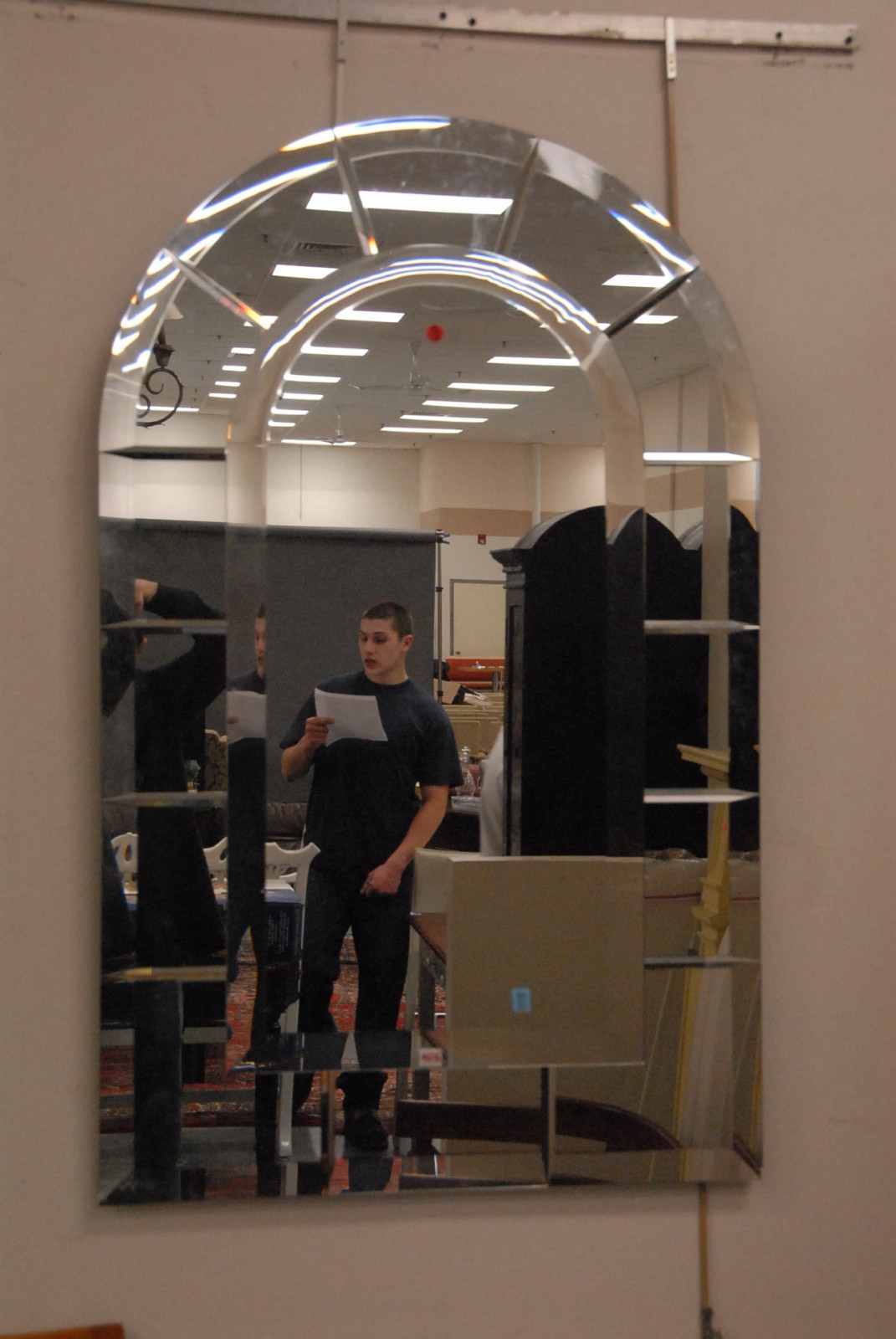 Karl Springer venetian dome top mirror with arched mirror and banding of smaller mirrors