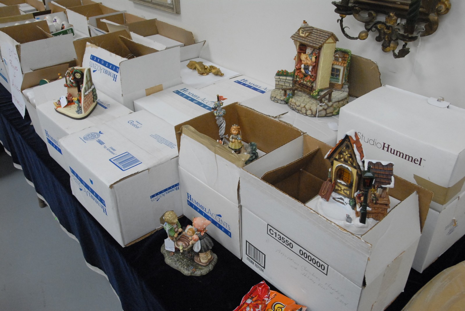 Twenty seven Accent Hummels, Hummels with accent pieces in the boxes, also three Schmidt figures