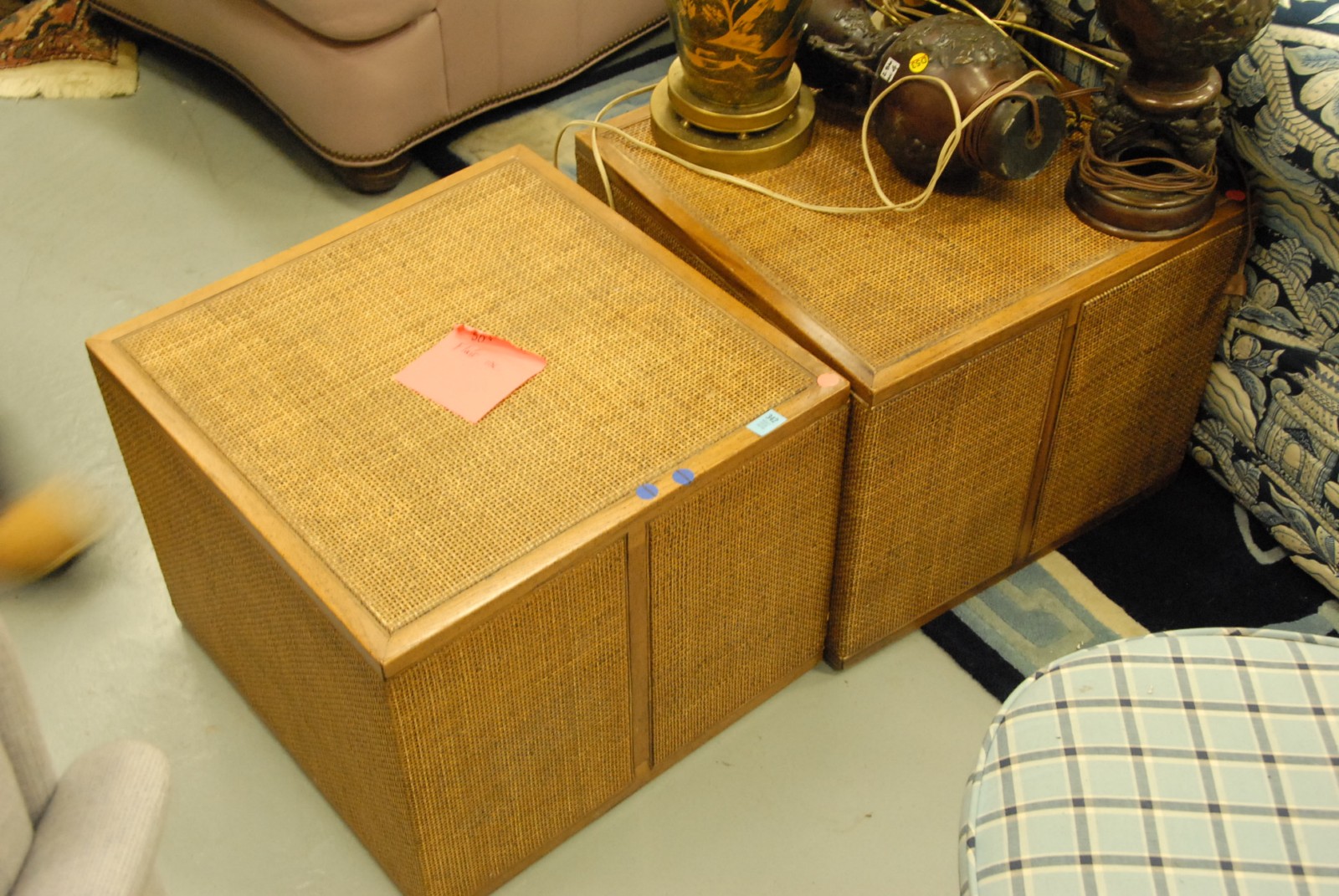 Pair of caned contemporary cube end tables