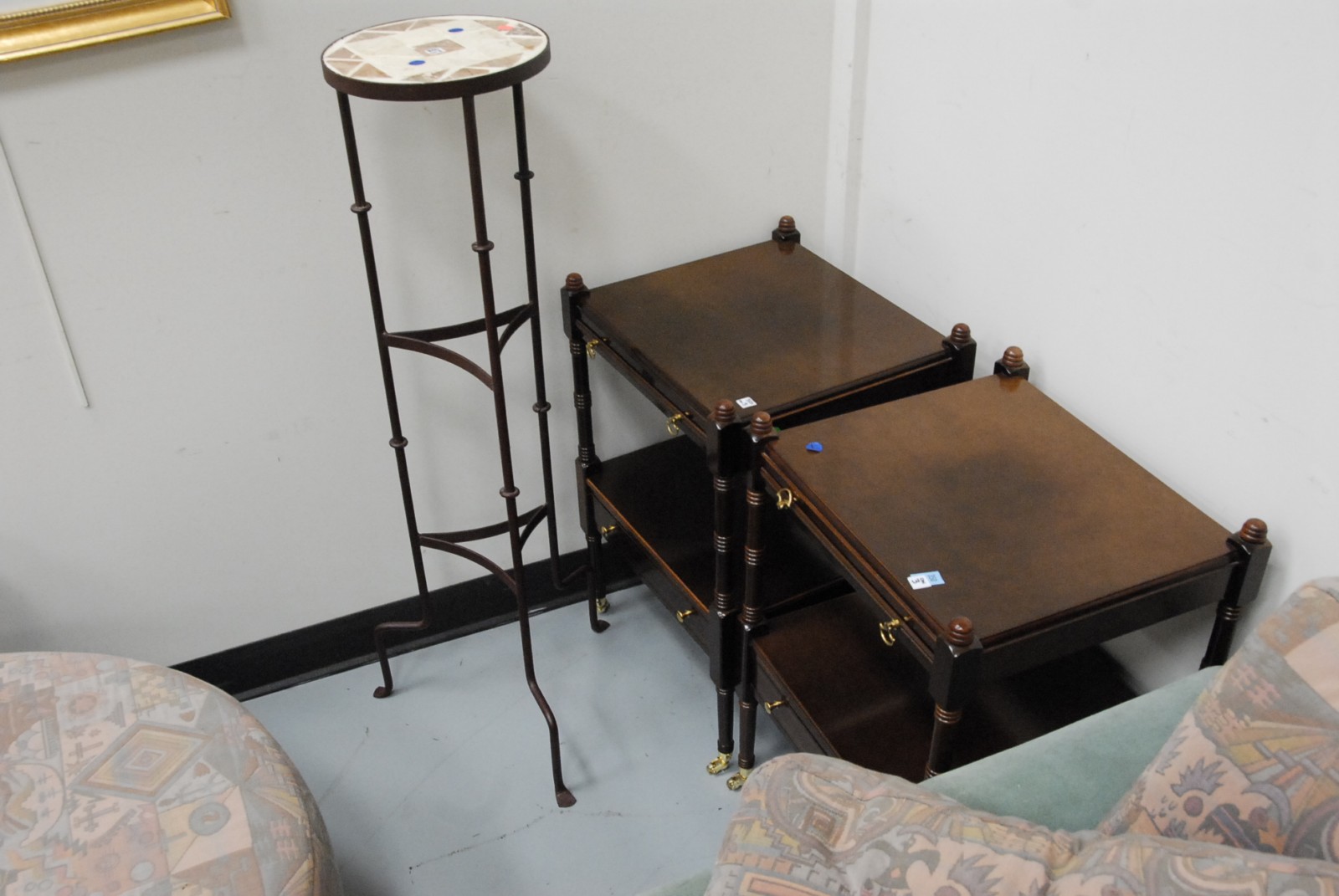 Group of three stands, two stands with slides