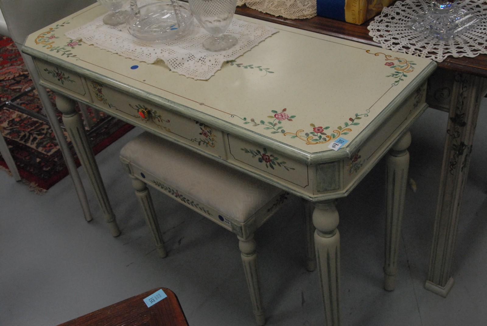 Paint decorated vanity and stool