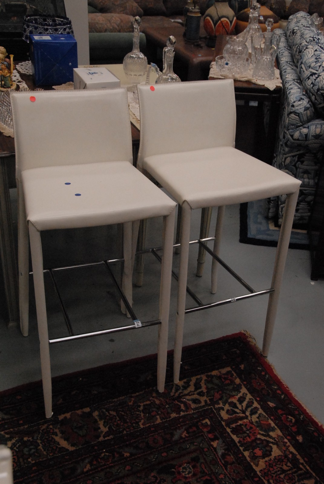 Pair of white leather barstools