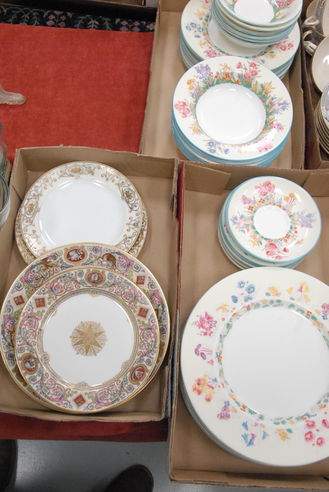 Three box lots to include partial set of Minton china dinnerware and three sevres plates