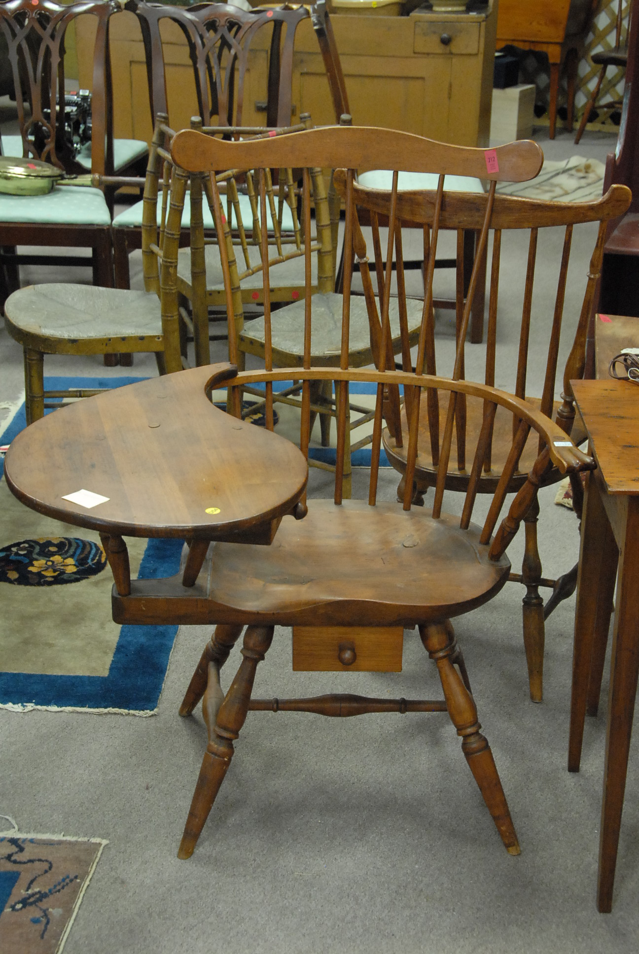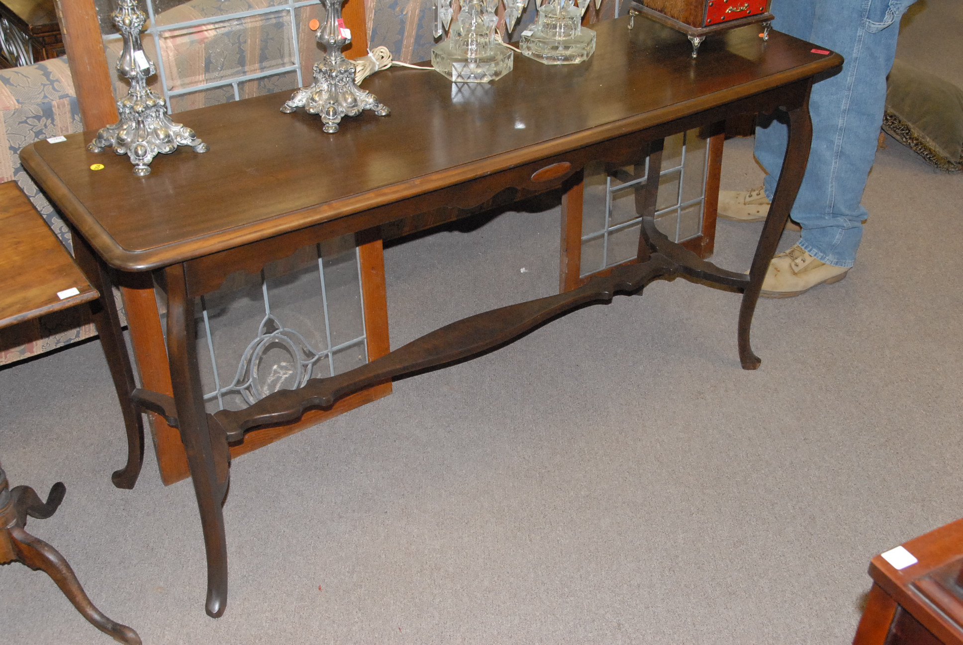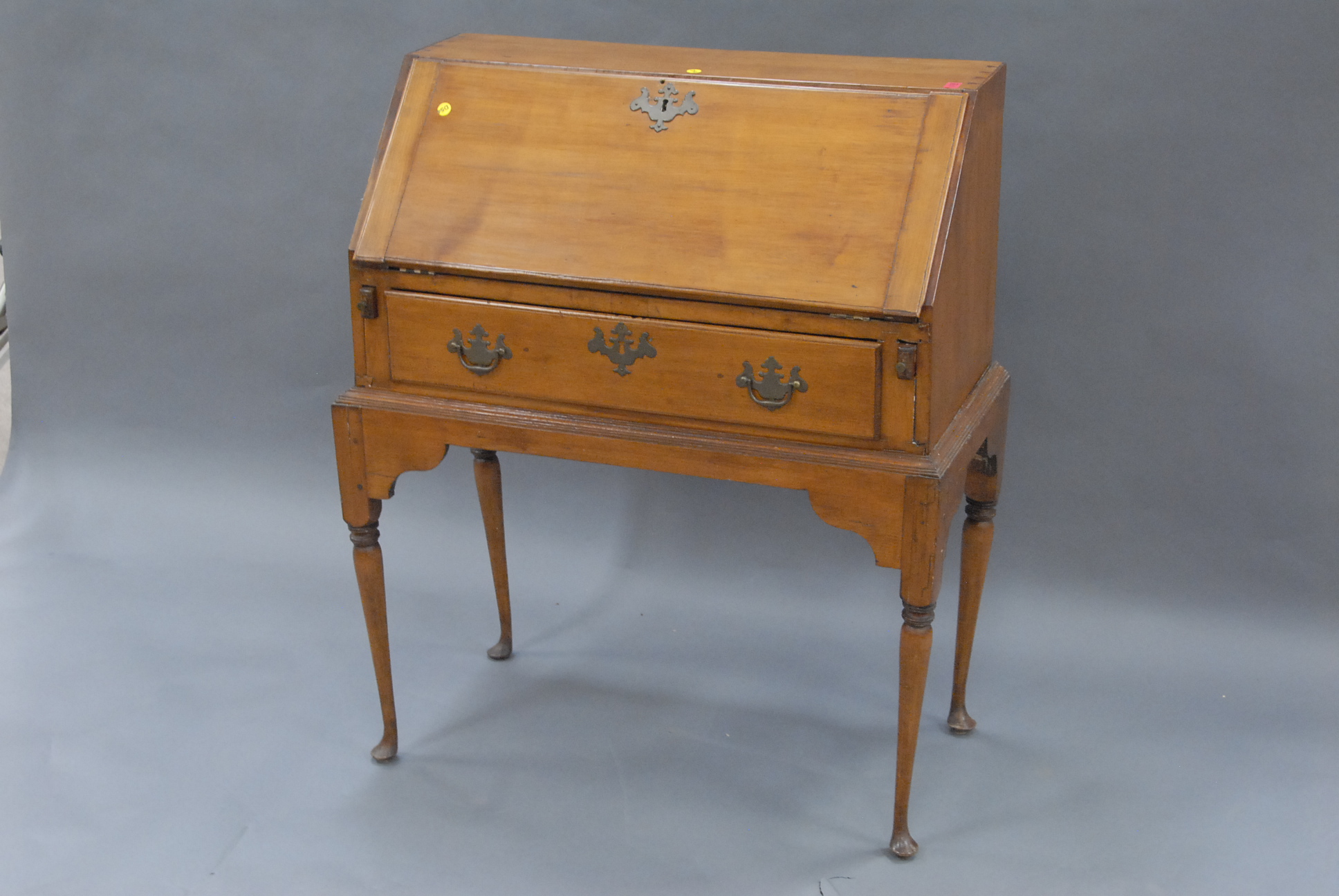 Cherry Queen Anne desk on frame with turned legs ending in pad feet