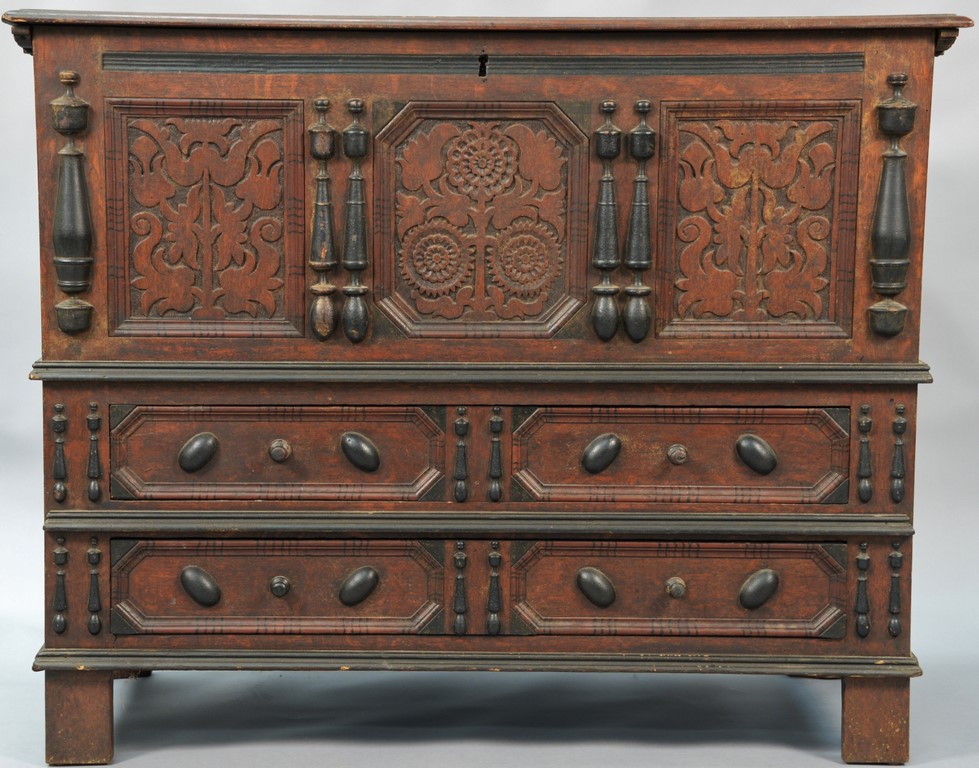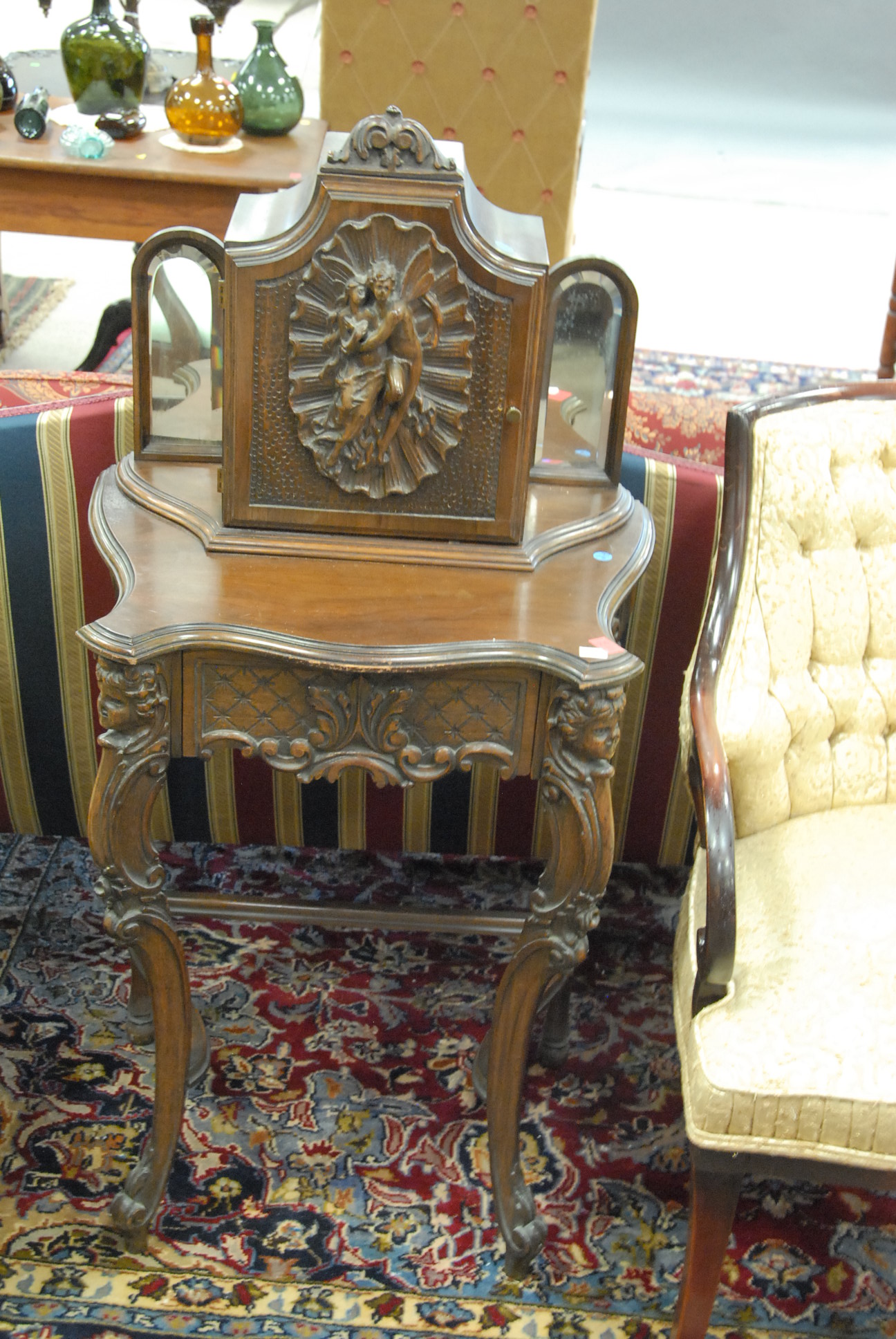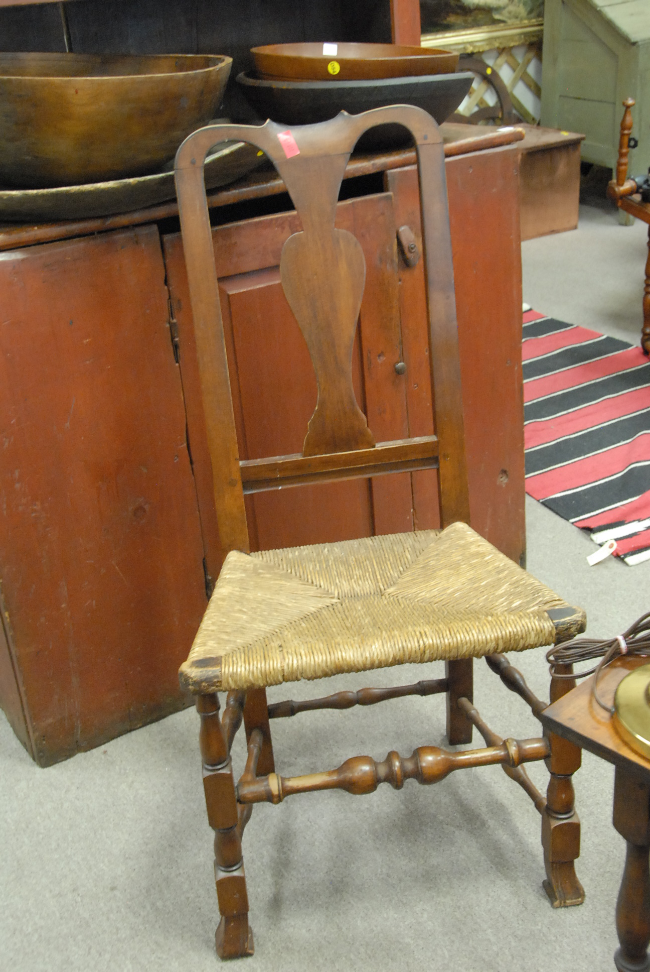 Cherry Queen Anne desk on frame with turned legs ending in pad feet