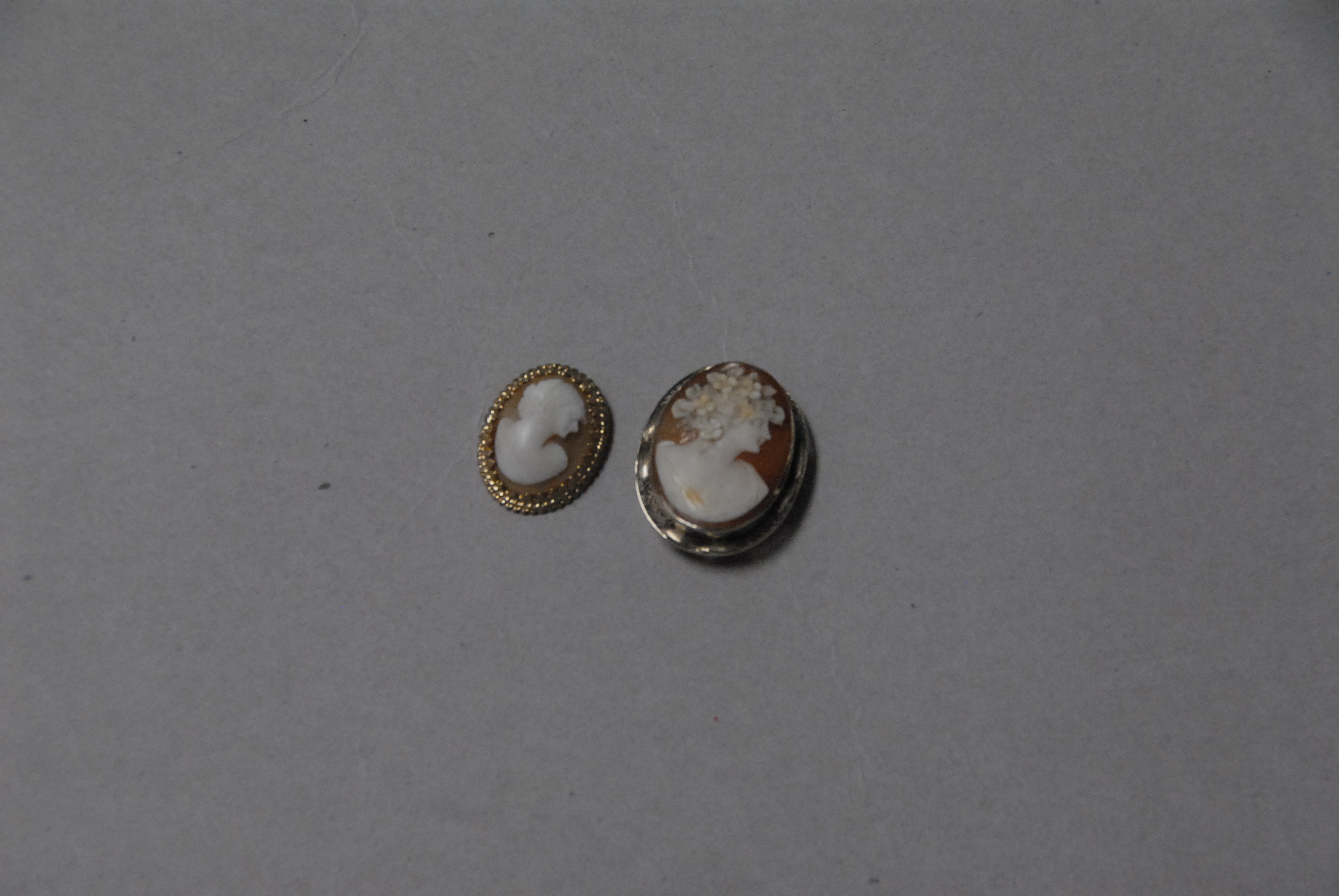 Bag lot with two shell cameos, one mounted with 10K one with 14K