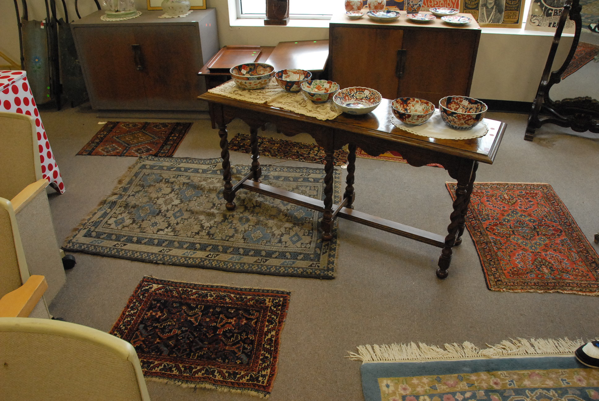 Six piece lot of Oriental rugs to include small Hamadan mat and a small caucasian mat, in fragments