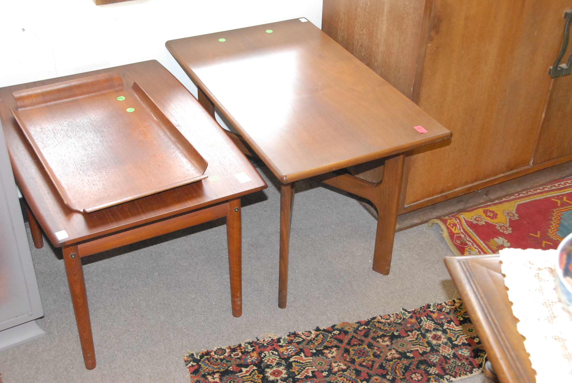 Two piece lot mid century chest and night table with polka dot cloth upholstery