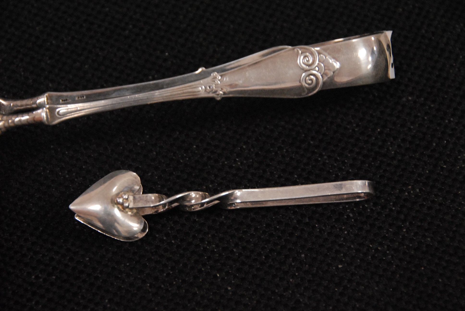 Two sets of sterling tongs, one marked Tiffany & Co.