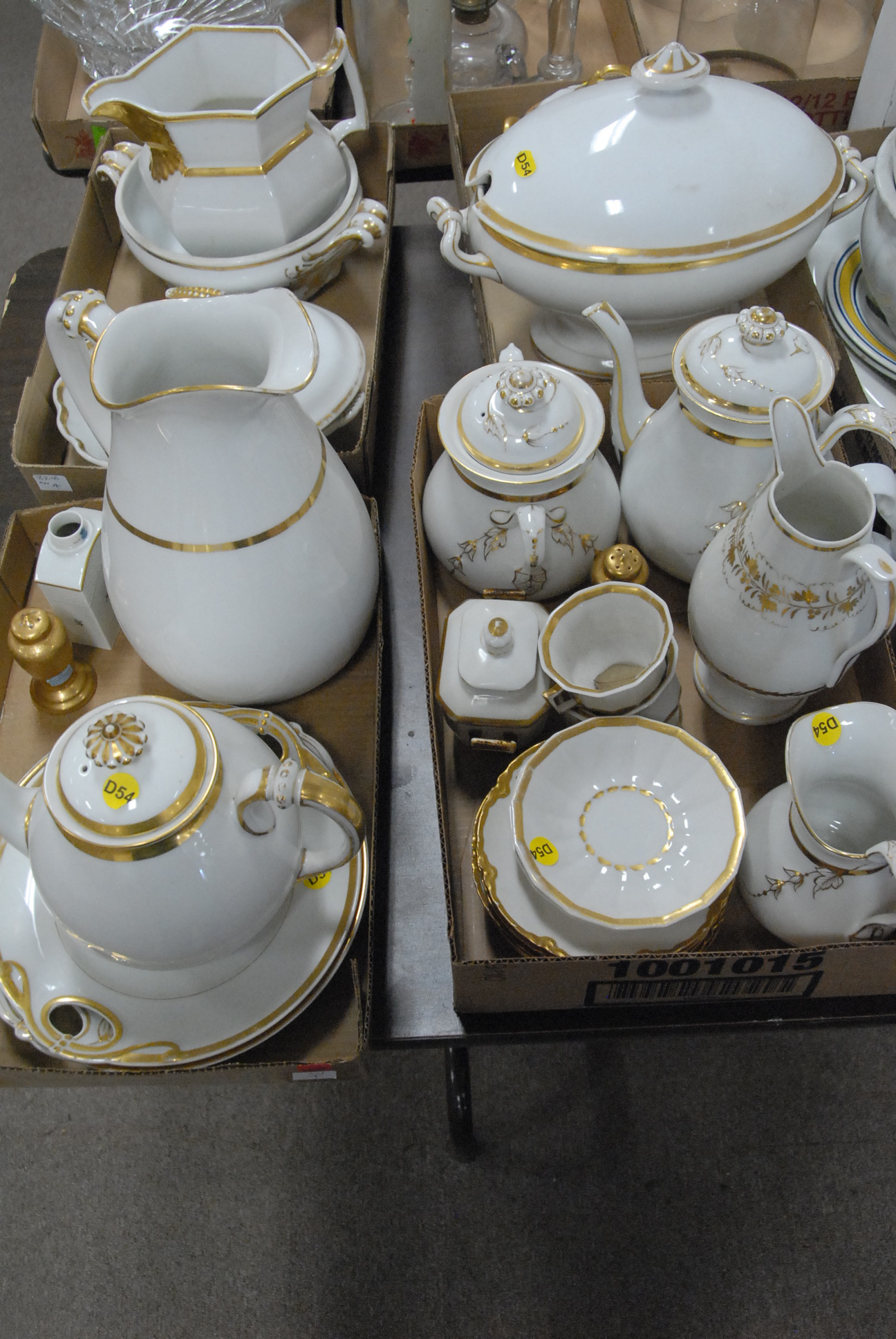 Four box lots of 19th century porcelain with gold trim, pitcher, tureen, pots, trays, misc