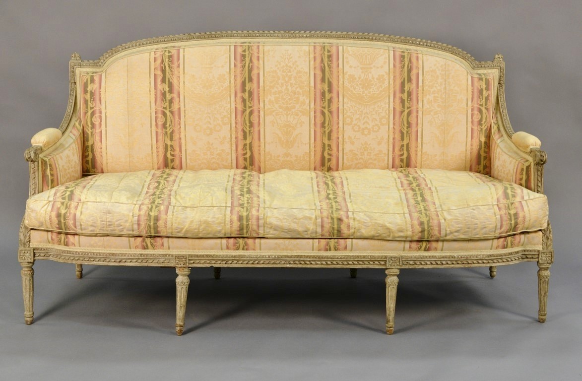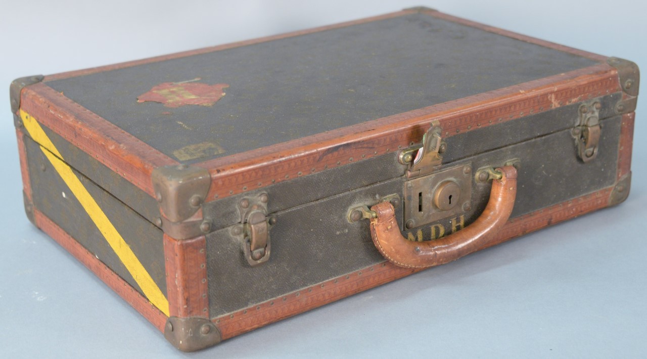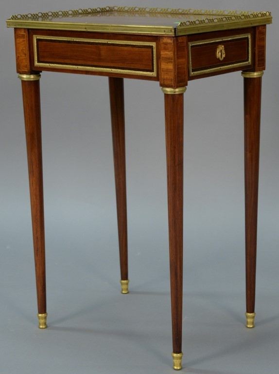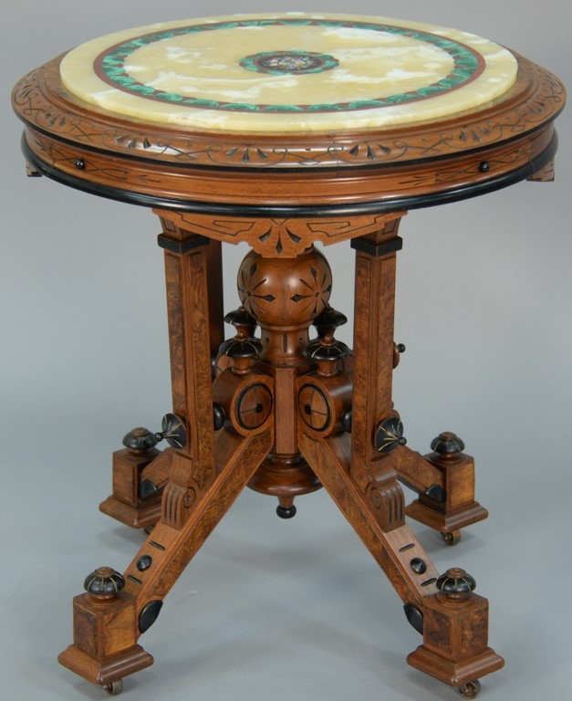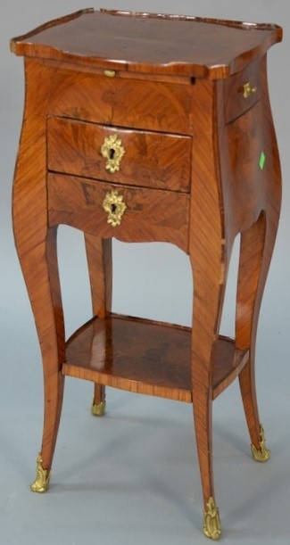 Five piece Stanley Furniture Co. bedroom set with slate inset tops, along with a camel saddle stool.