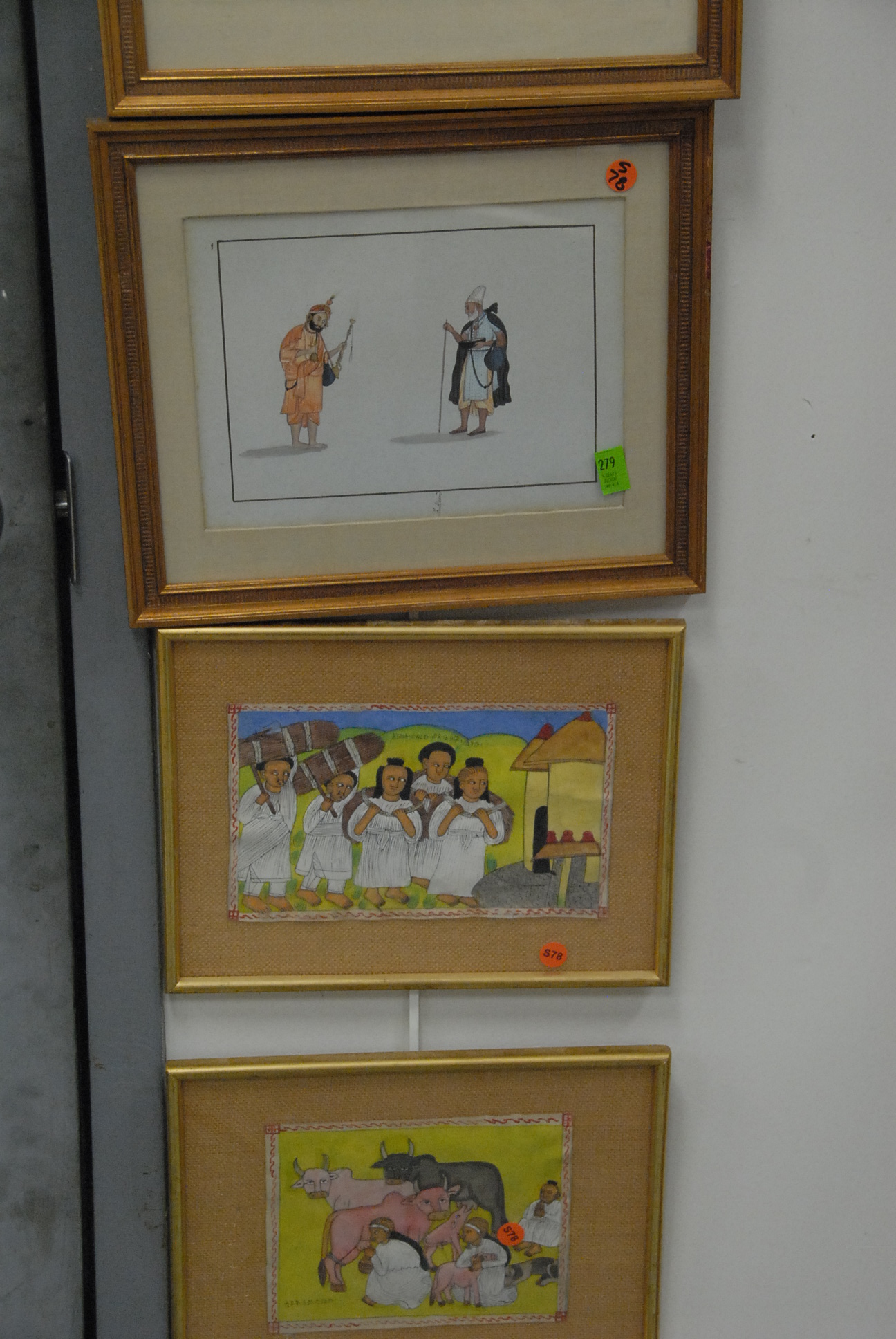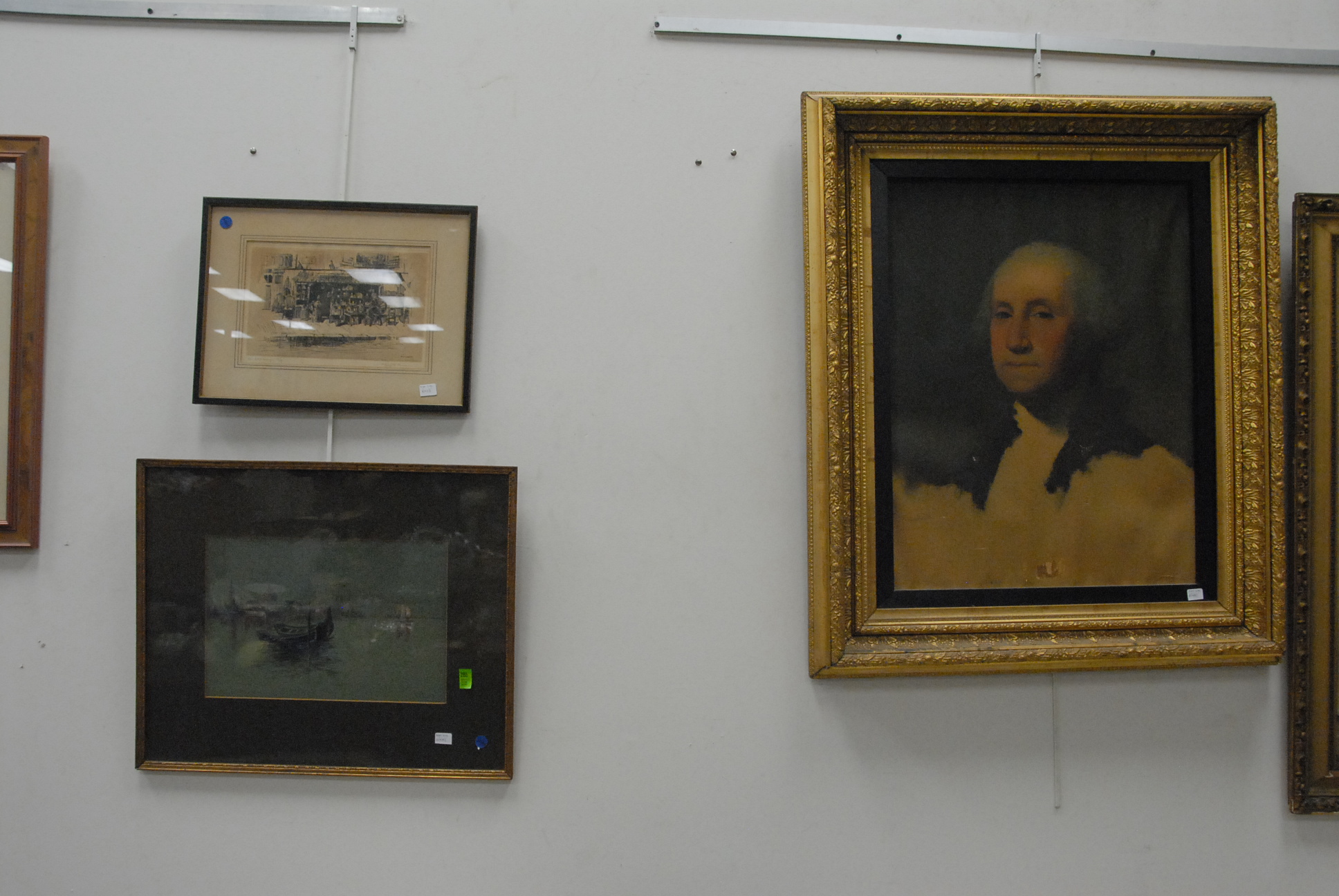 Three piece lot of Victorian gold frame, watercolor, and a pencil signed print The Little Antique Shop signed Lewis.