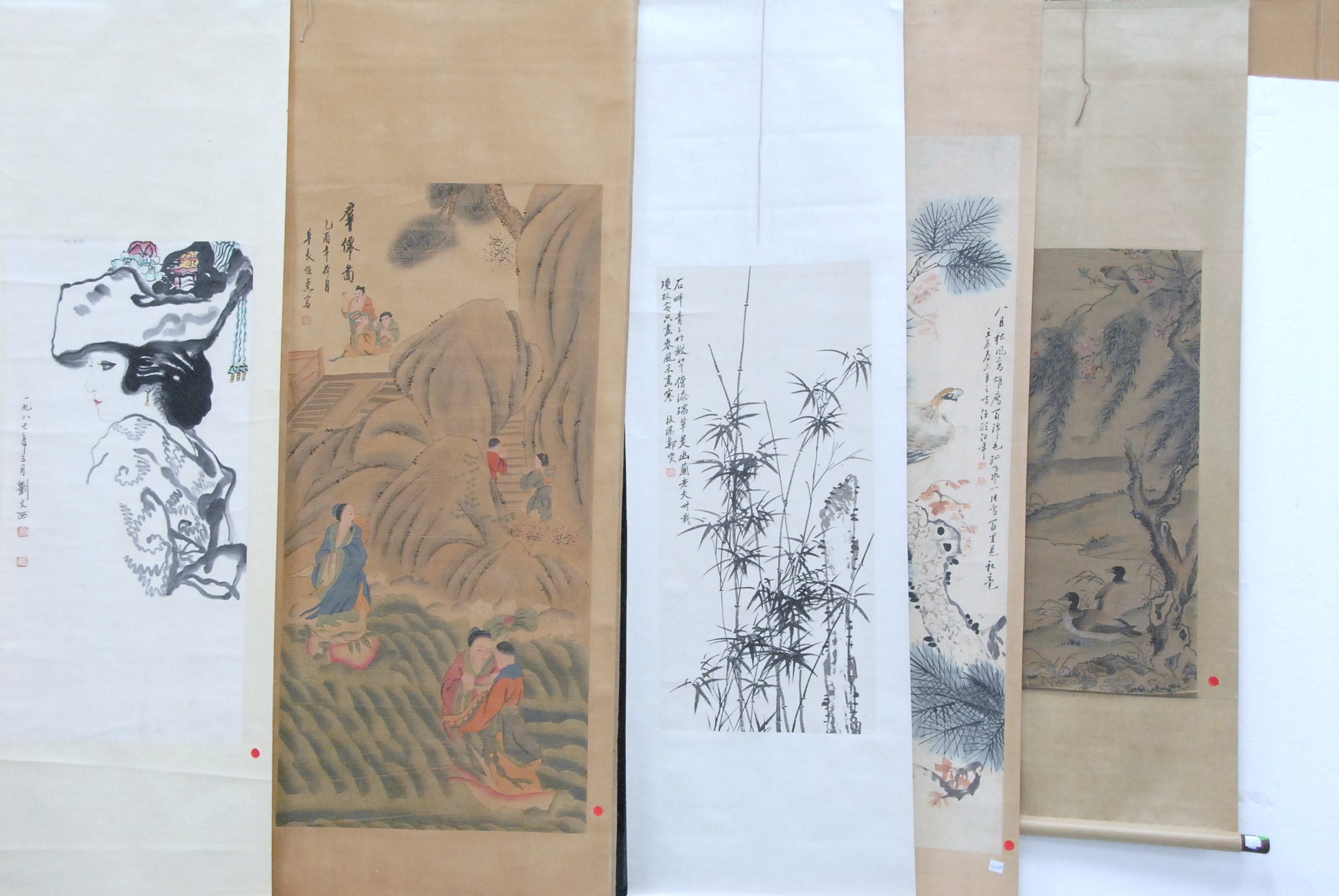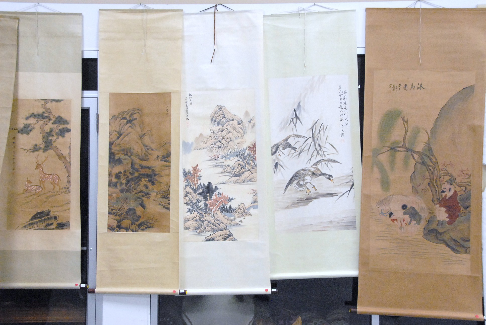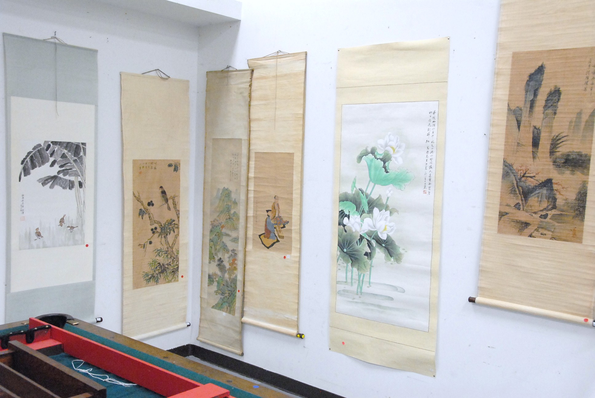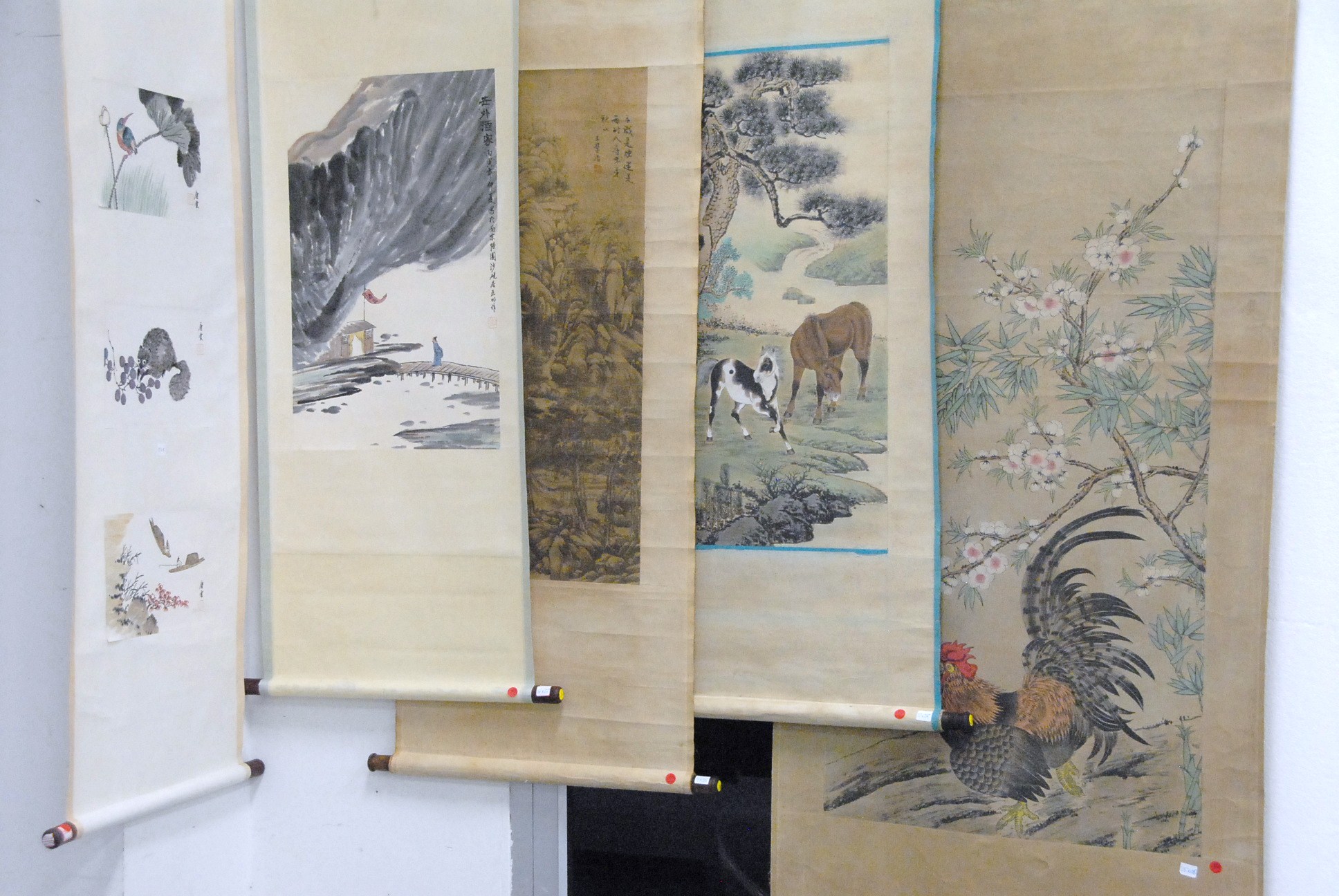 Four box lots of china including two Chinese tea caddy’s, two Japanese plates, Japanese and Chinese dishes, and small vases, pair of majolica parrots.