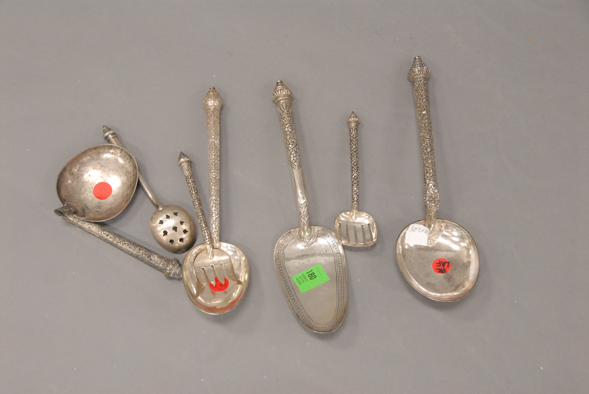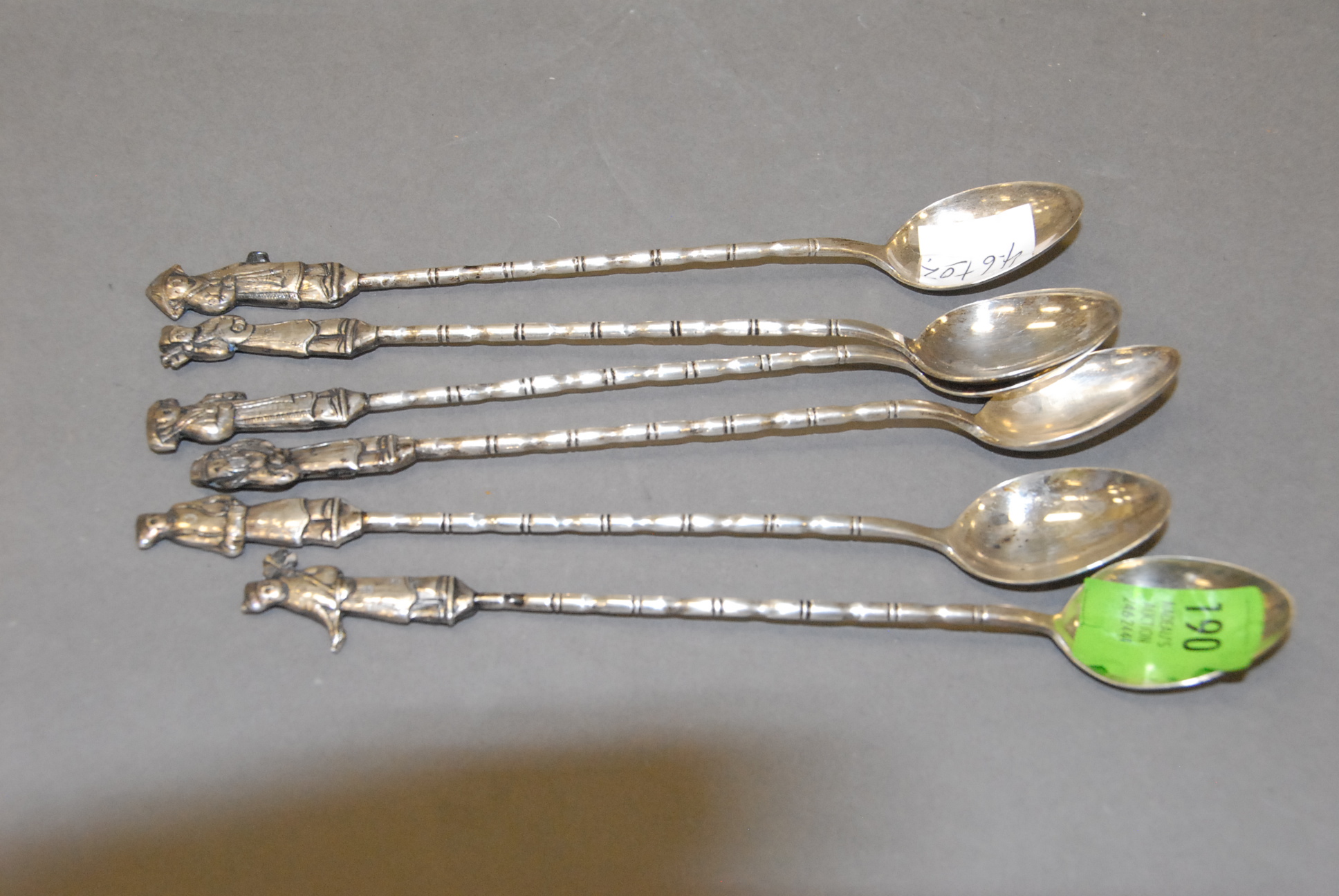 Set of six silver iced tea spoons with Chinese figures, 4.6 troy oz.
