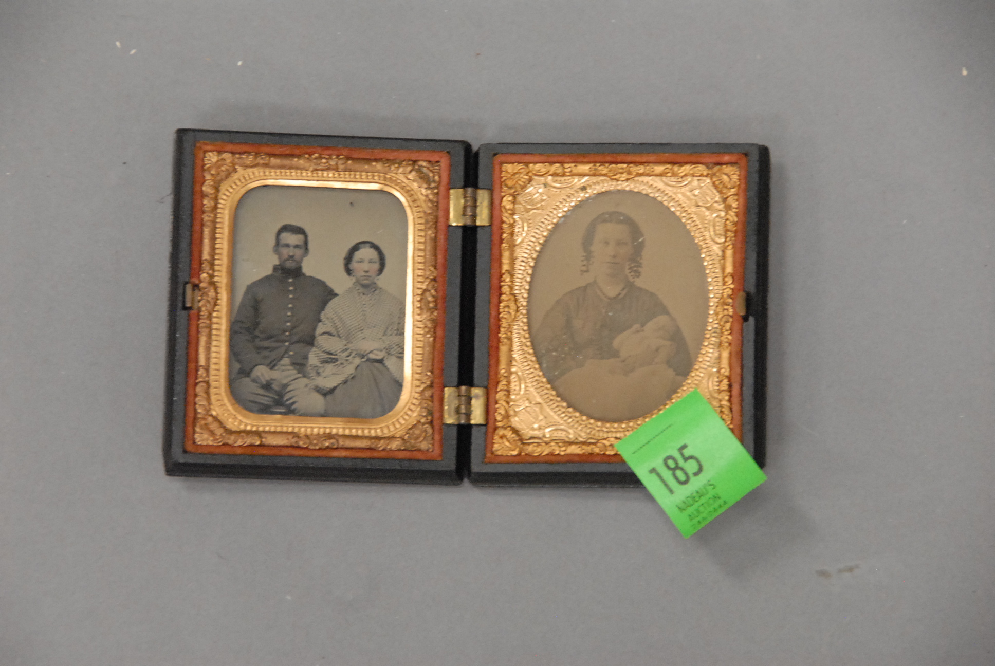 Ambrotypes of a soldier and a woman in a guttapercha case.