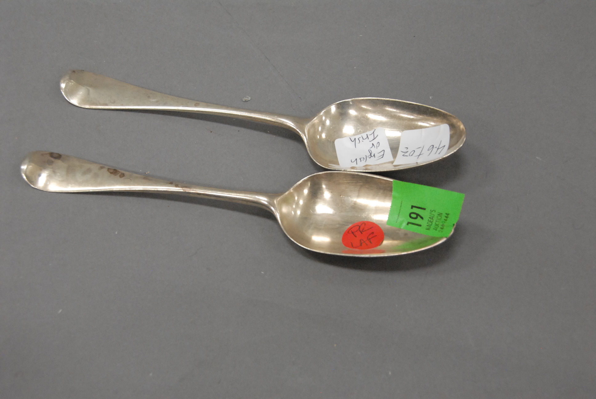 Pair of English or Irish silver spoons, 4.6 troy oz.