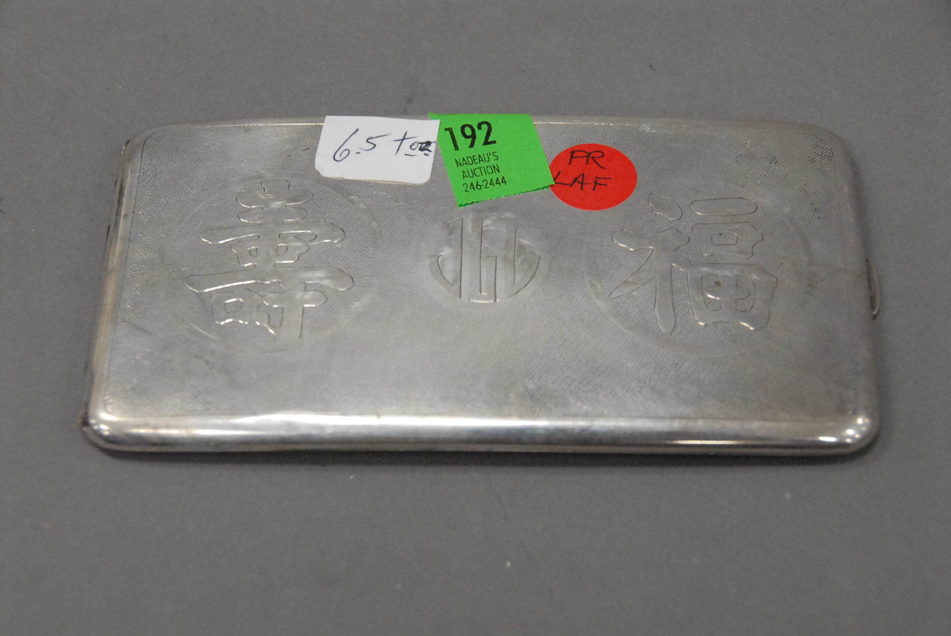 Chinese silver cigarette case engraved for John Lyle Lafferty, 6.5 troy oz. along with a tortoise shell cigarette case.
