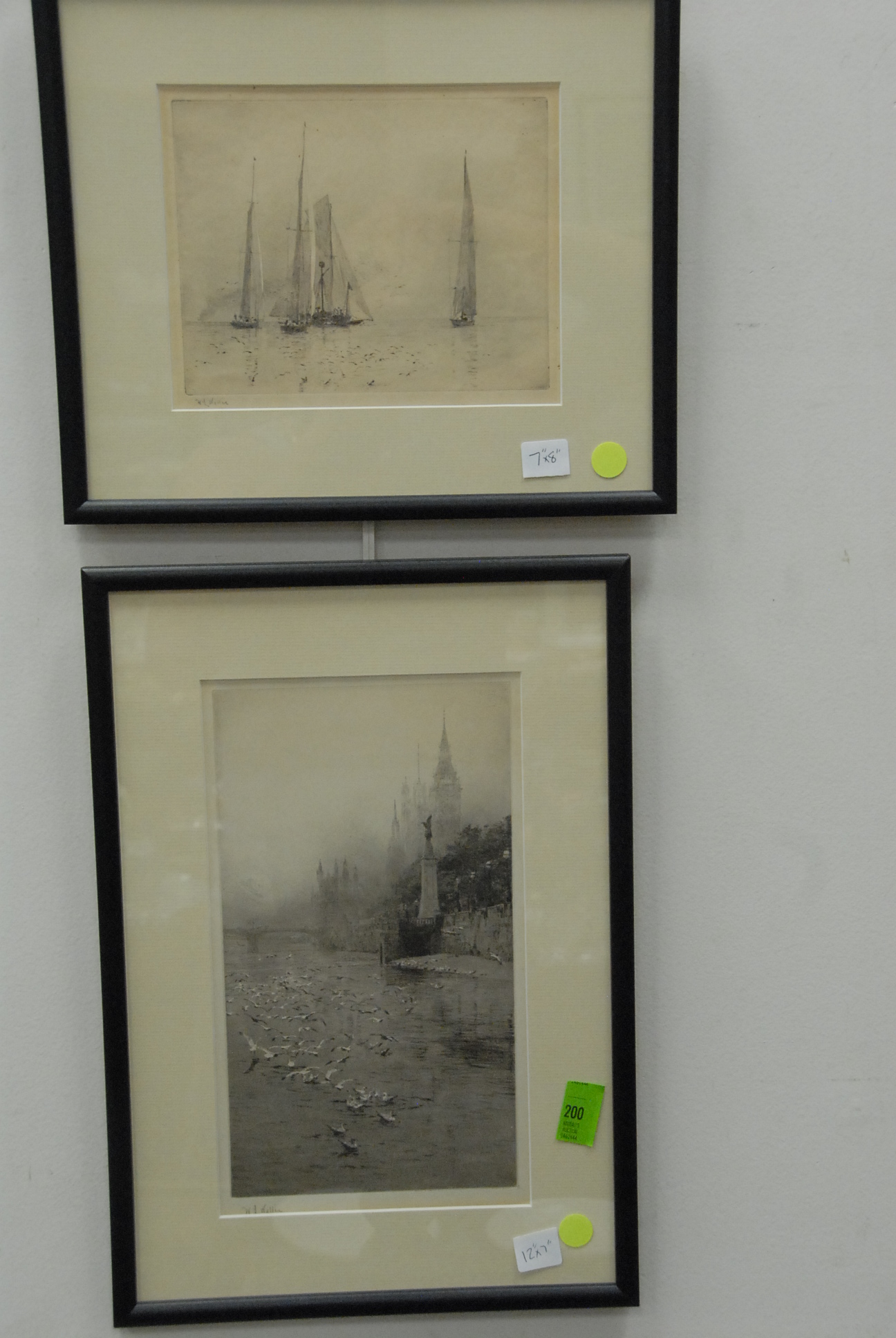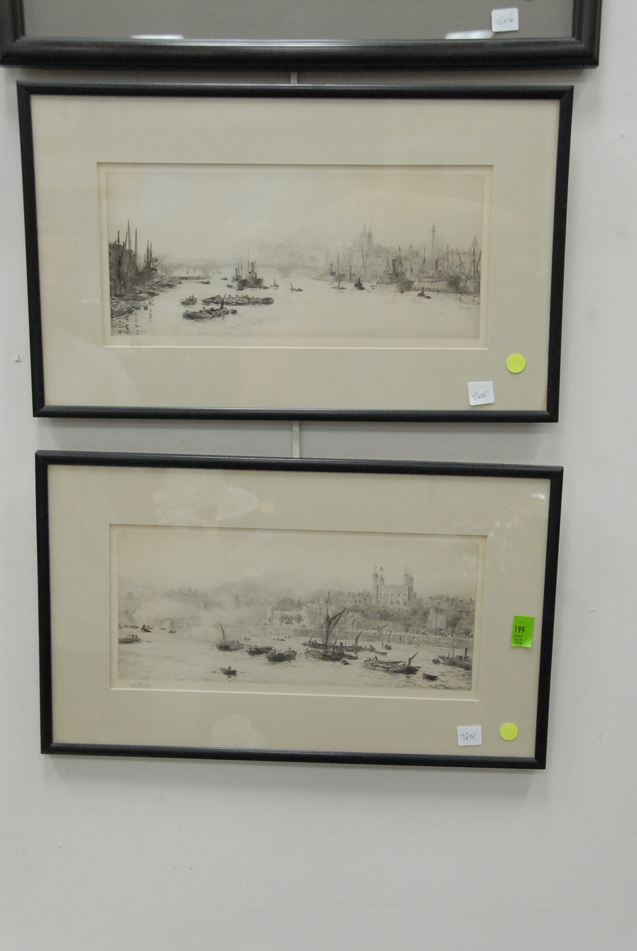 Pair of etchings signed W. L. Wyllie, The Thames And The Tower Of London and The Thames River London.