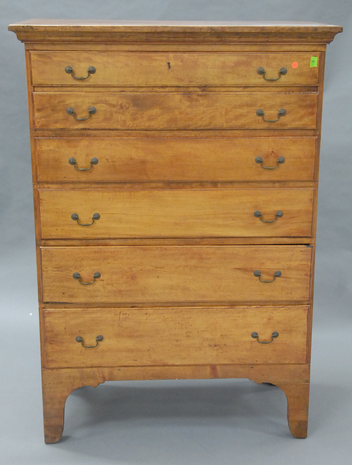 Federal birch six drawer tall chest with a false drawer top, circa 1800.