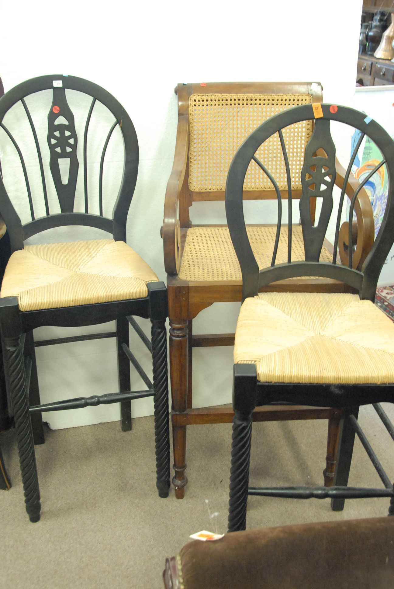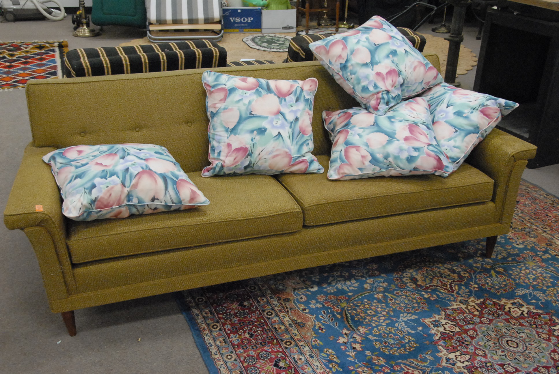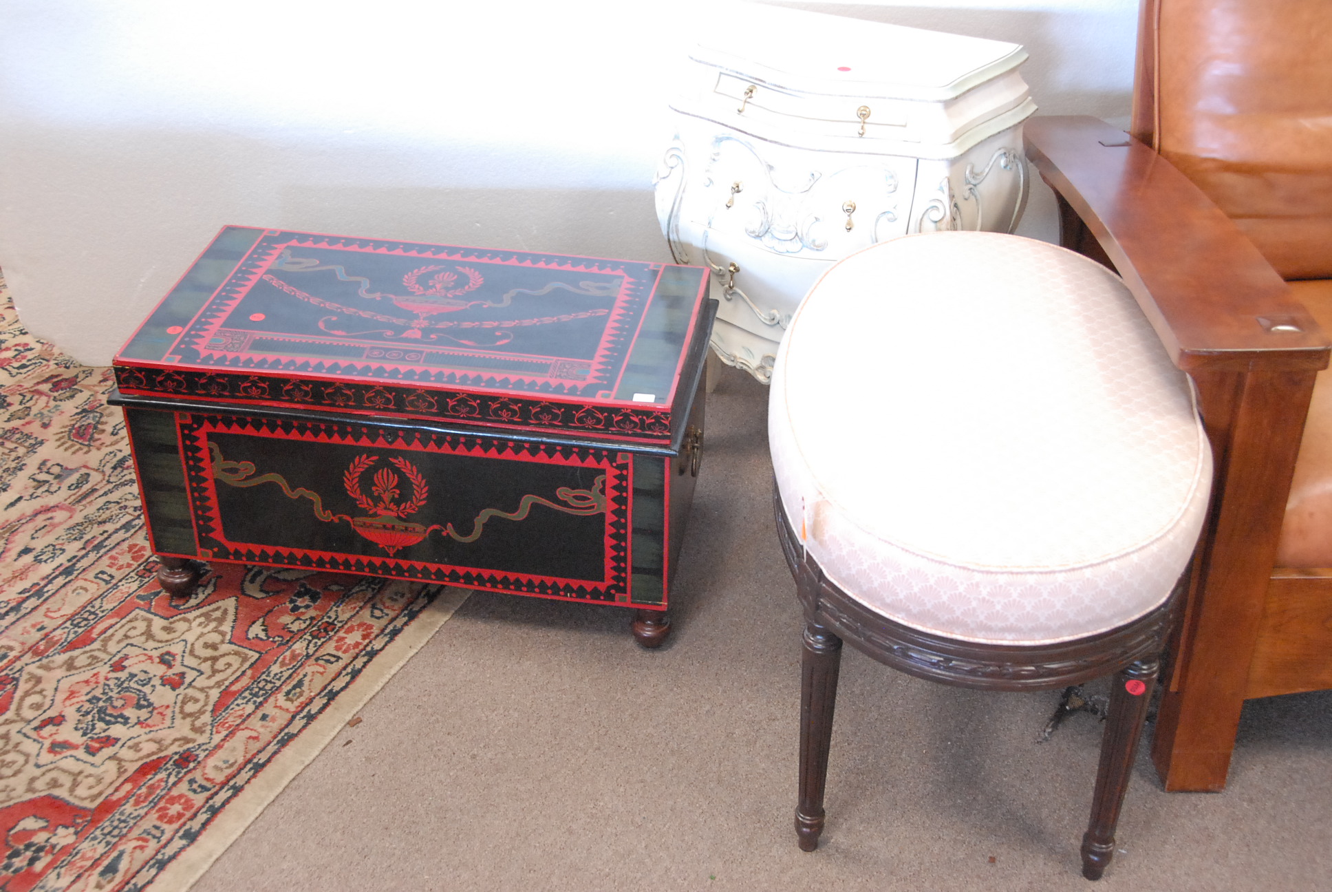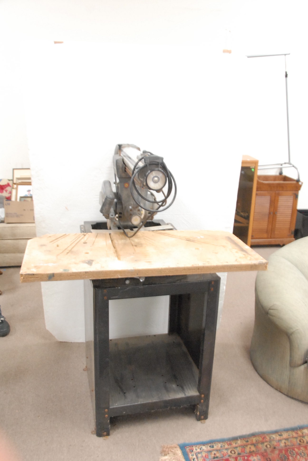 Large grouping to include HP computer, HP photo printer, large box of prints, two televisions, love seats, chairs, television stand, vanity, lamps, piano, maple hutch, lounge chairs, speakers, box lots, etc.