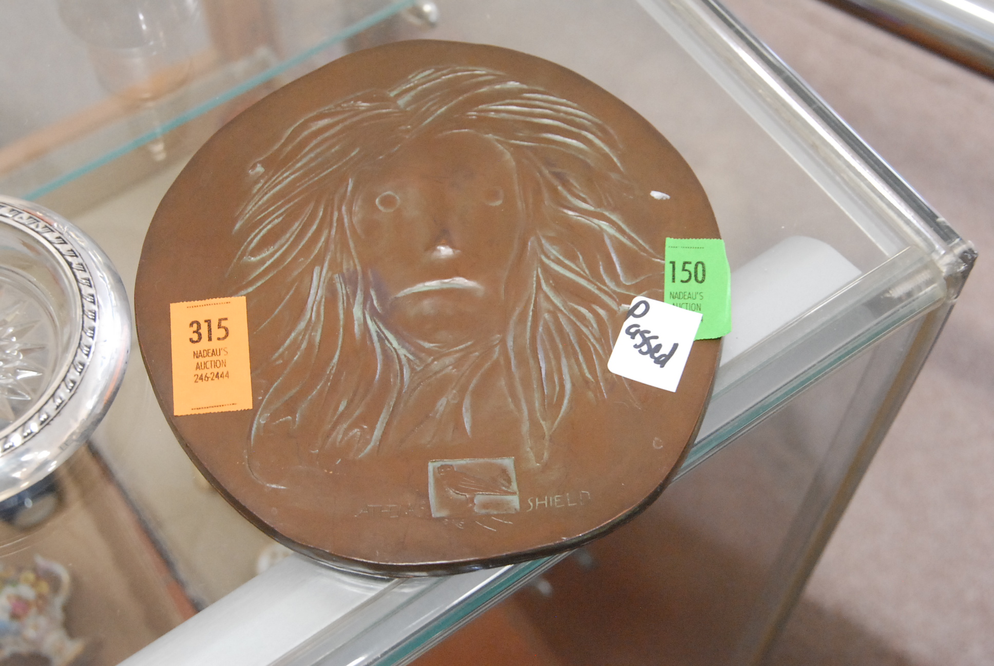 Group lot to include a primitive stone axe, a bronze dragon figure with a crystal ball, a bronze head, a bronze Tibetian piece.
