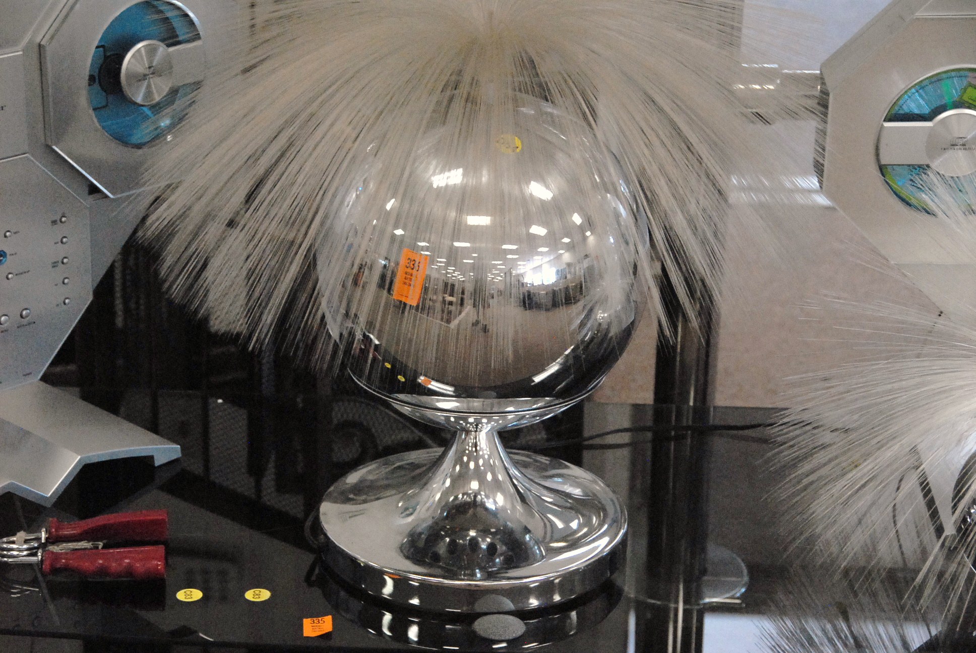 Two chrome fiber optic lamps, one rotates and changes colors.