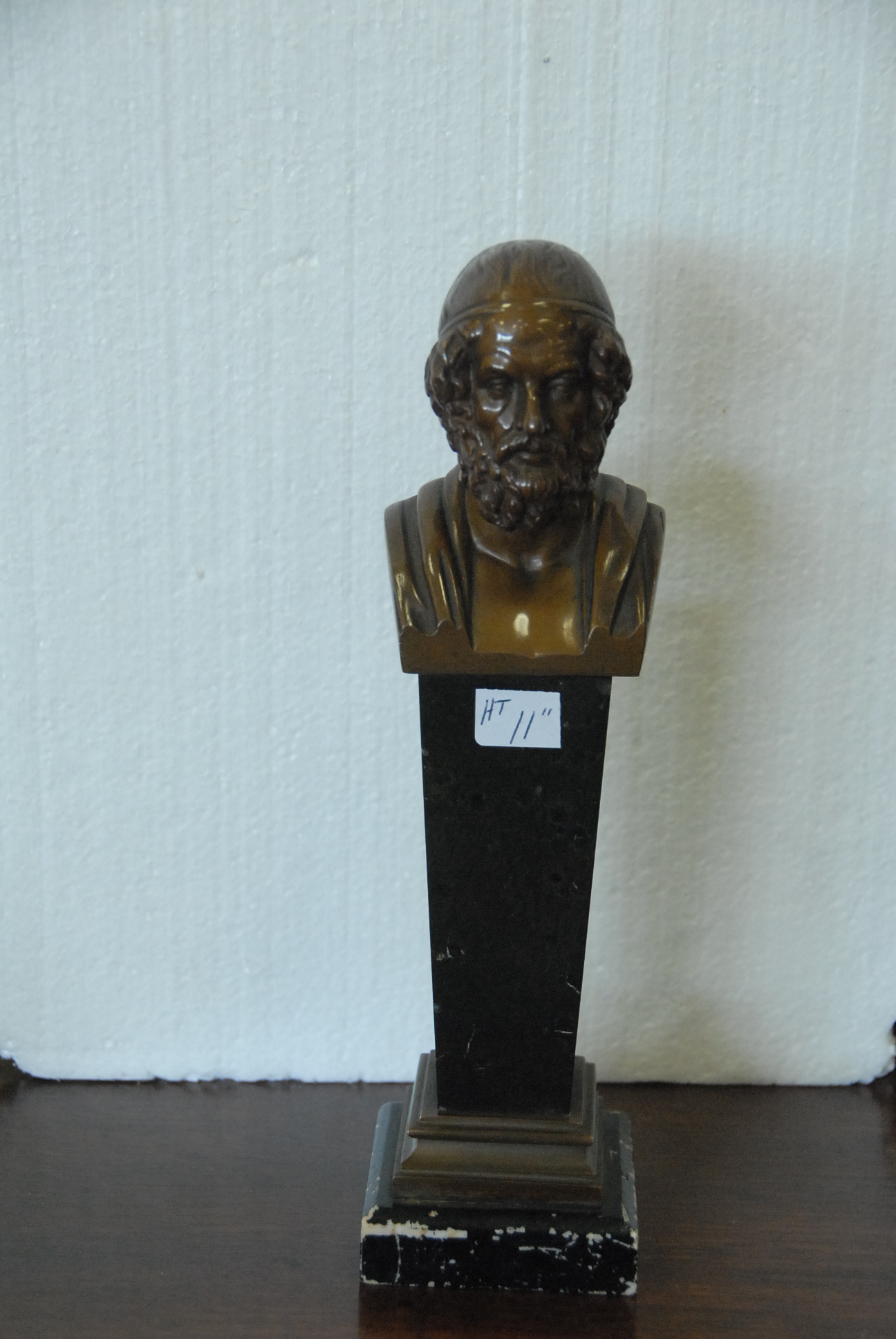 Bronze on a marble and bronze pedestal.