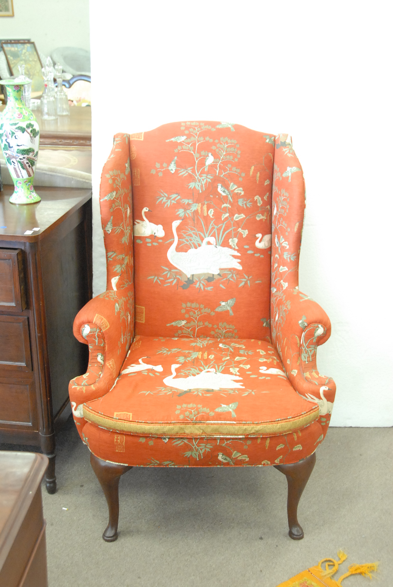 Pair of Henredon Queen Anne style upholstered wing chairs.