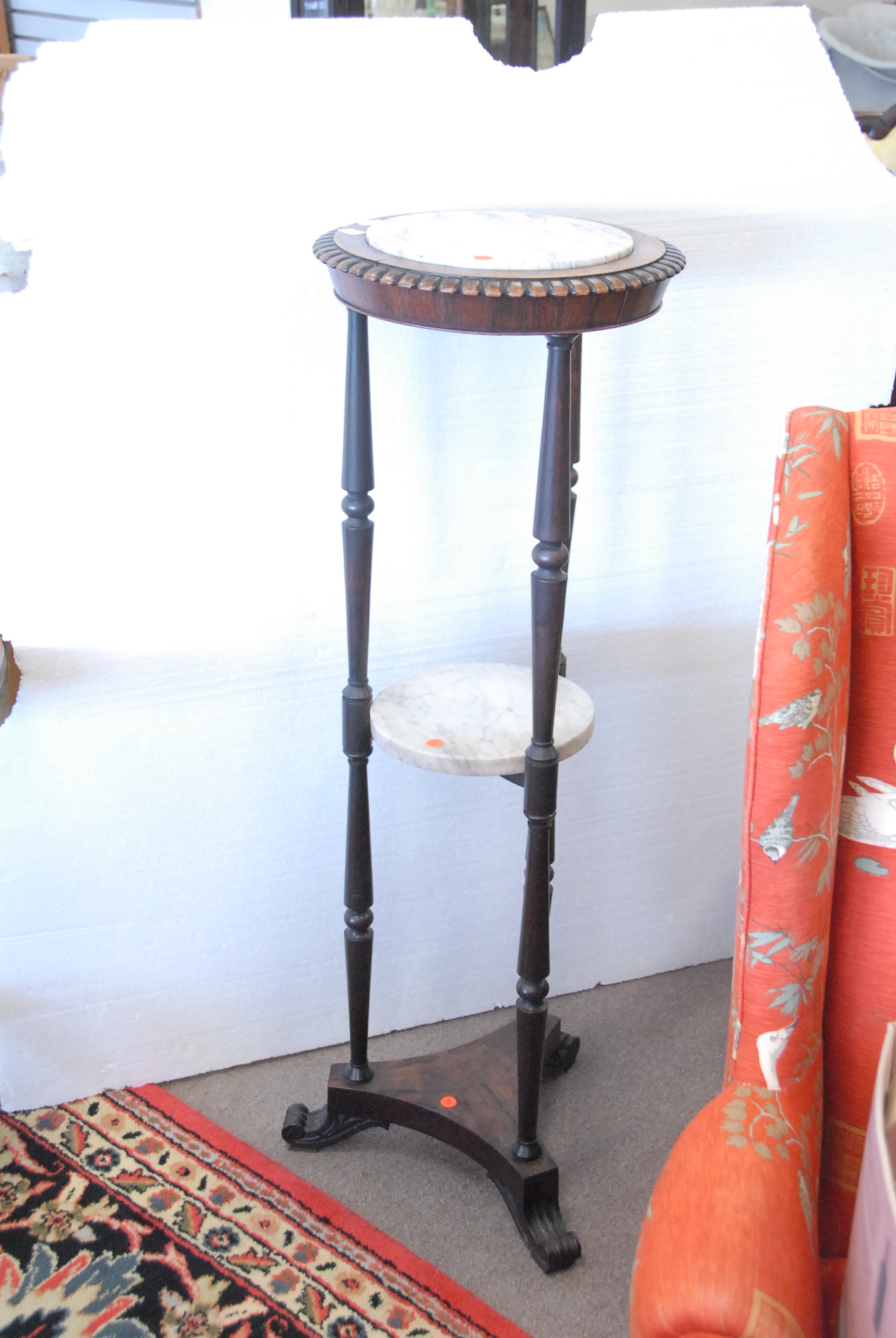 Rosewood Victorian marble top two tier stand.