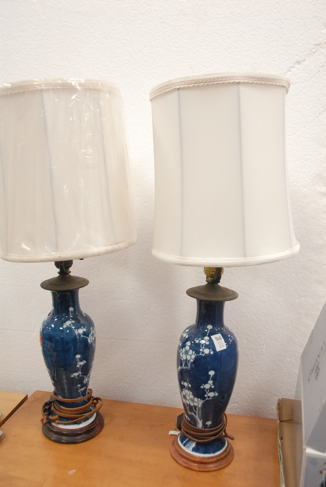 Pair of Chinese blue and white porcelain vases made into table lamps.