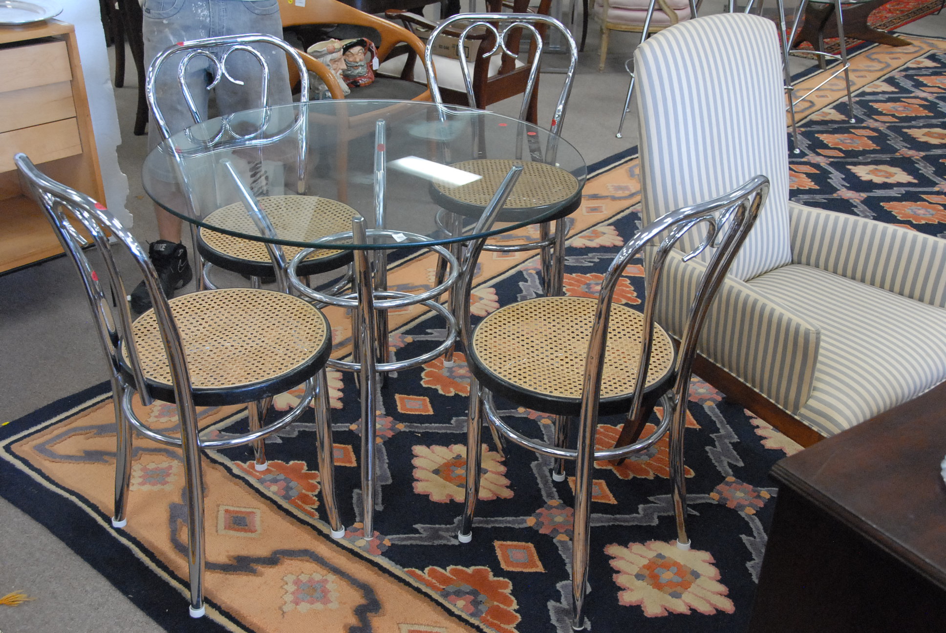 Chrome dinette set to include four chrome chairs and a chrome glass top table.
