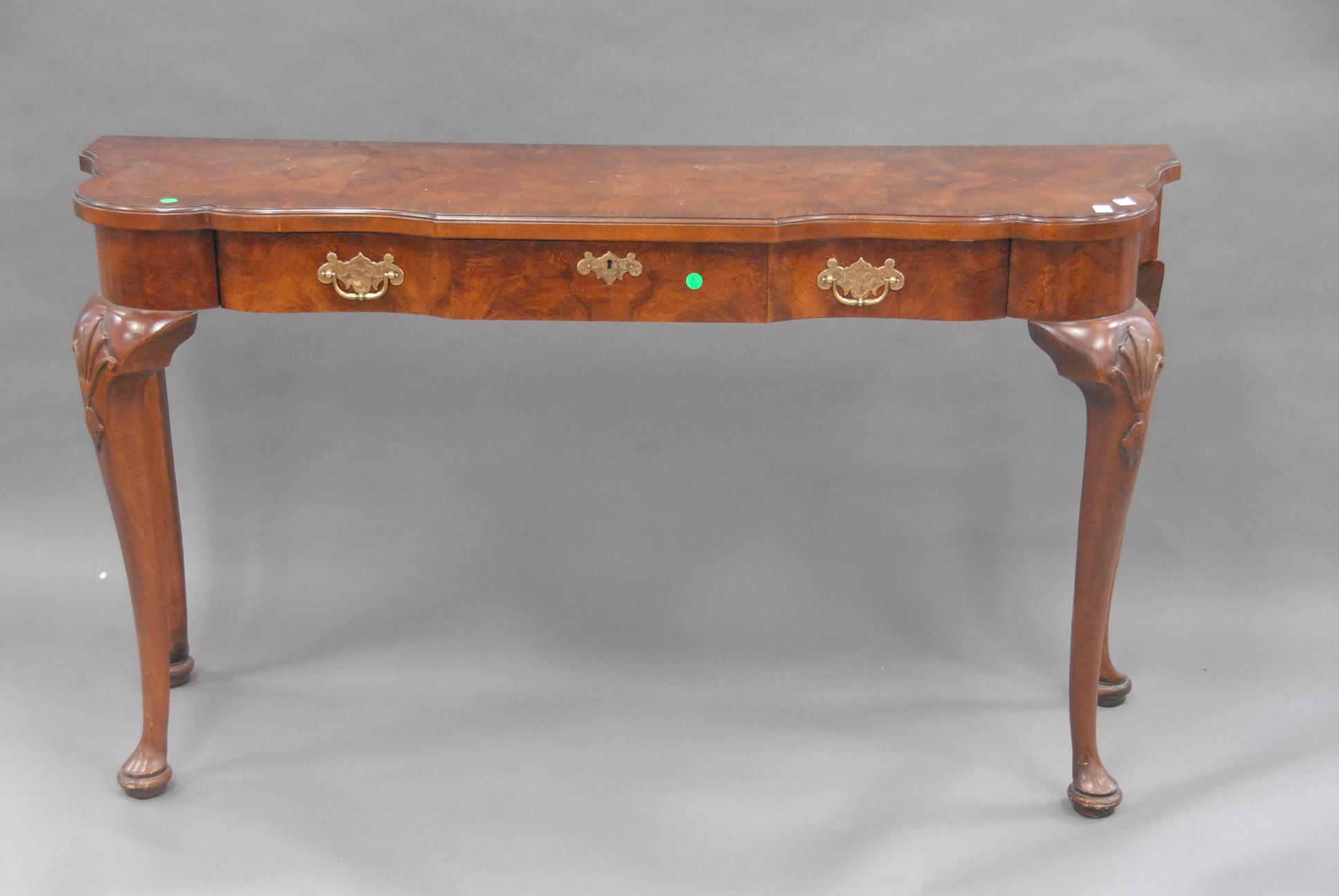 Hekman Burl wood Queen Anne style hall table with a drawer.