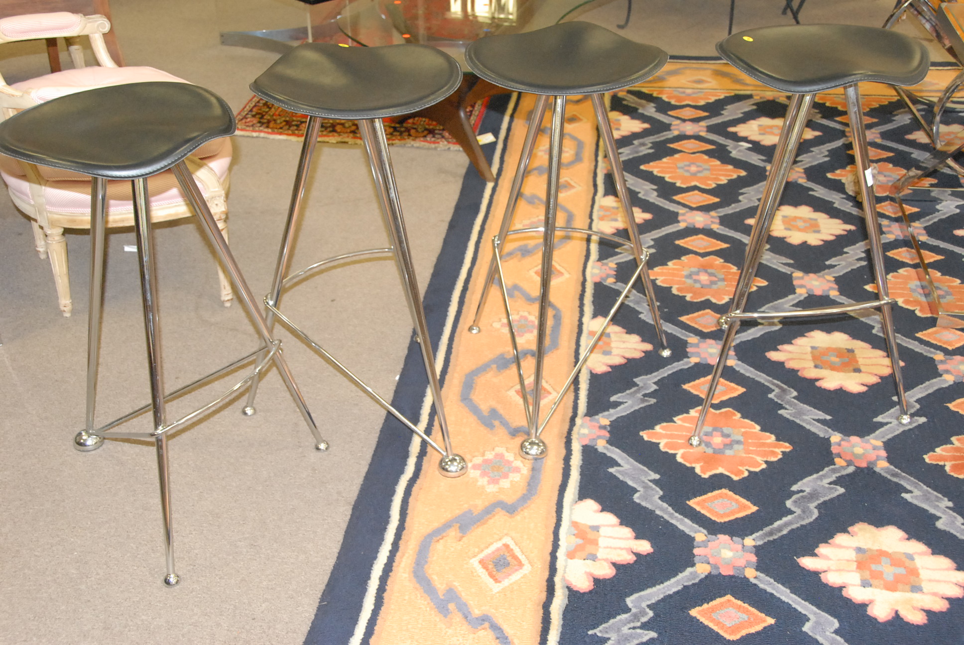 Set of four bar stools with leather seats.