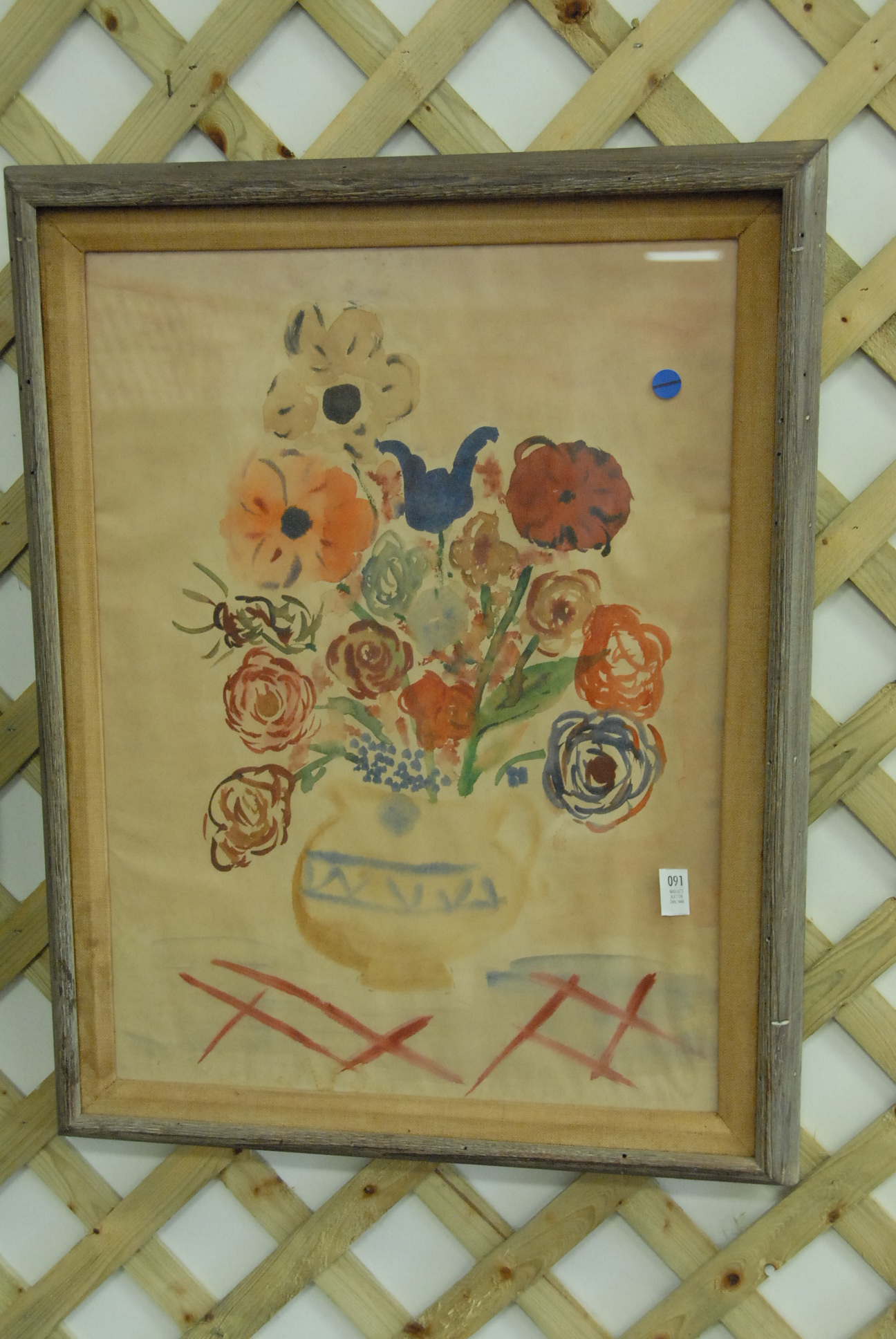 Contemporary painting of a still life flowers in a vase, watercolor on paper, unsigned.