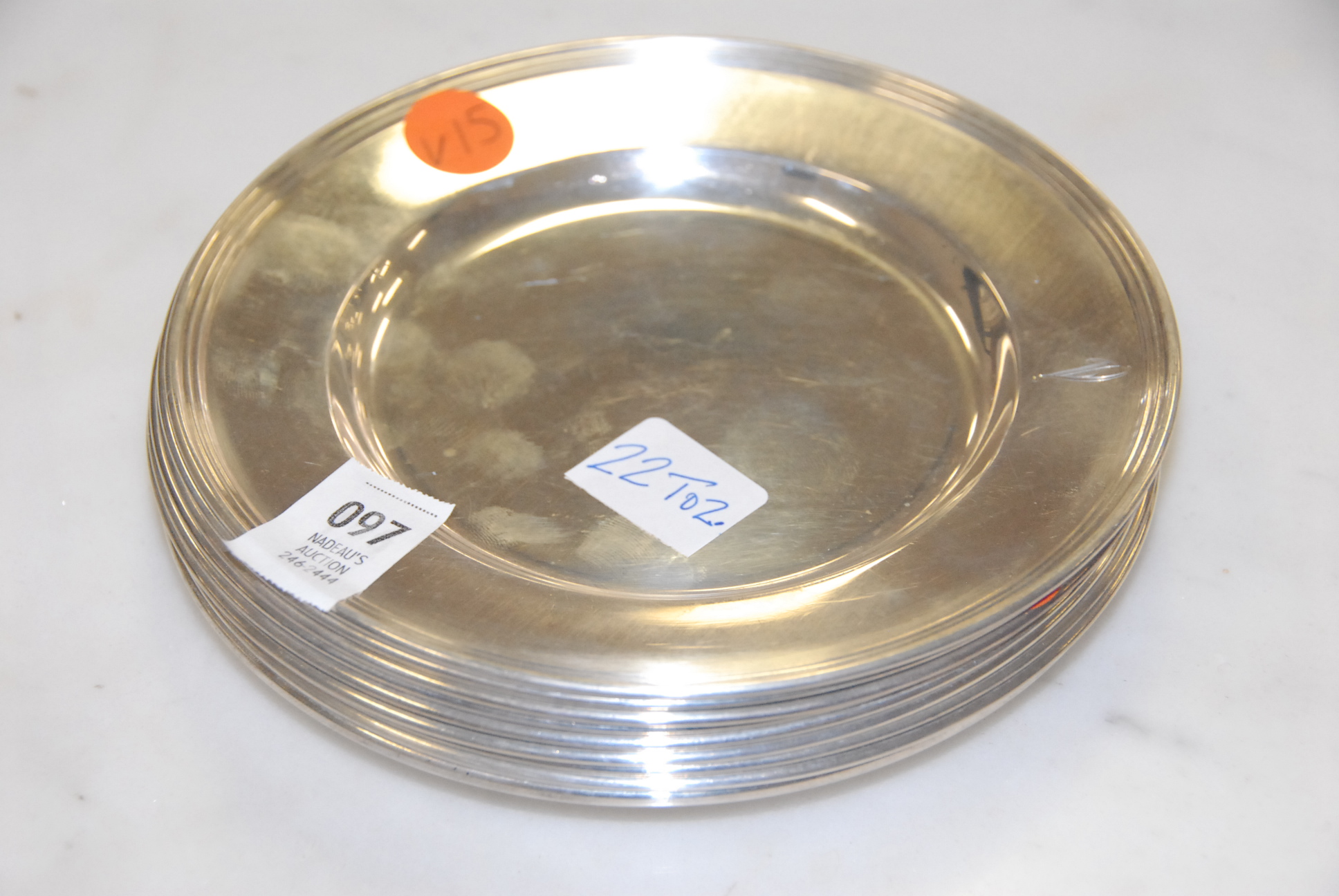 Sterling silver lot of nine bread plates.