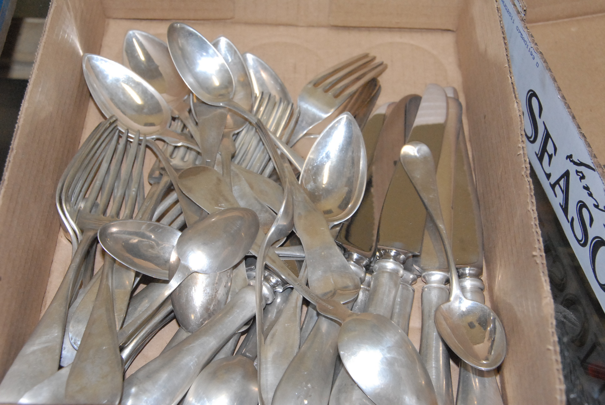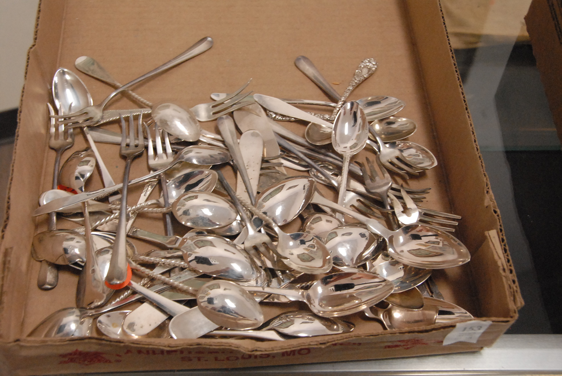 Table lot of fifteen boxes including china, glassware, cut glass, Royal Worcester partial tea set, cups, saucers, platters, plates, silver plate, china shoe collection, and miscellaneous.