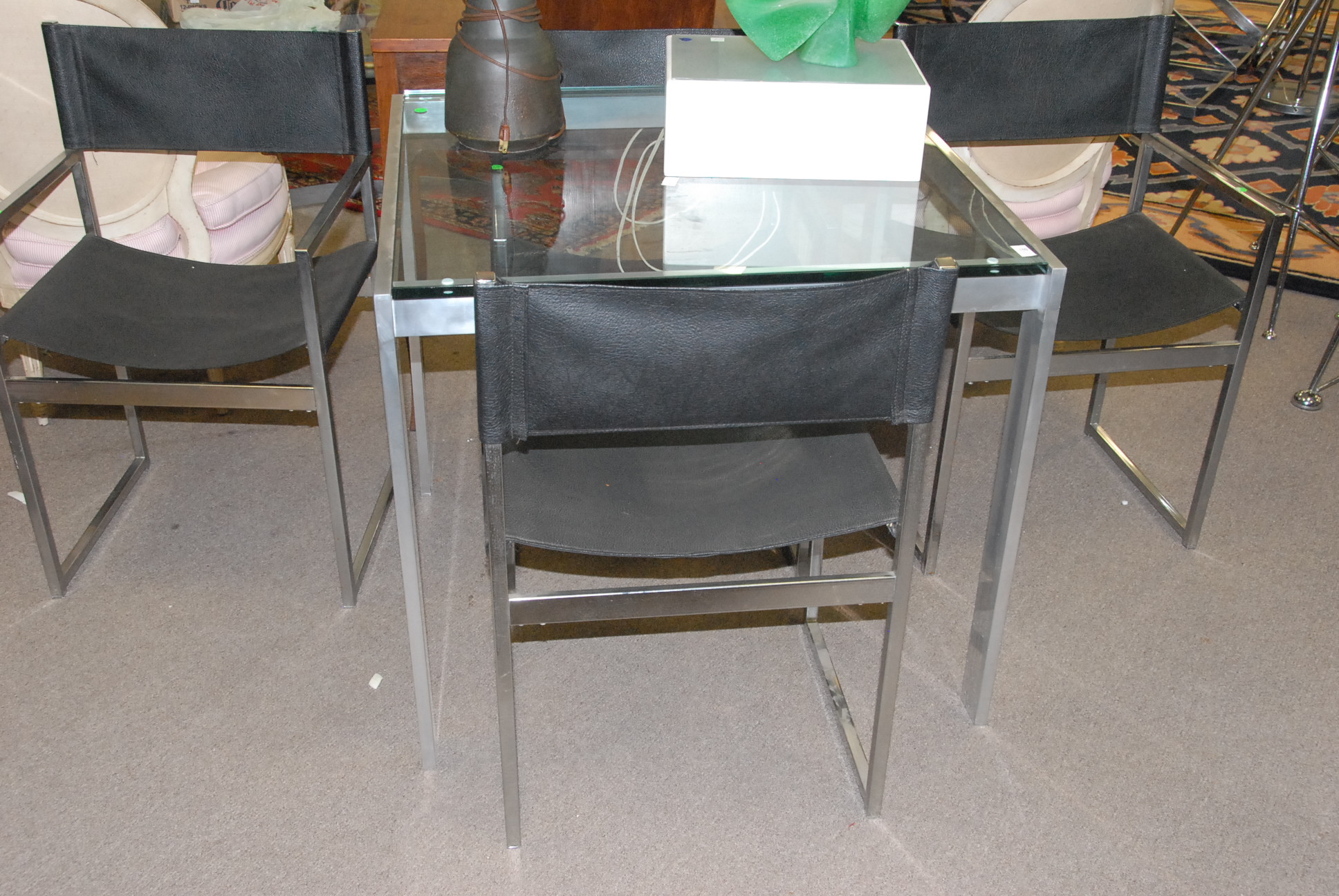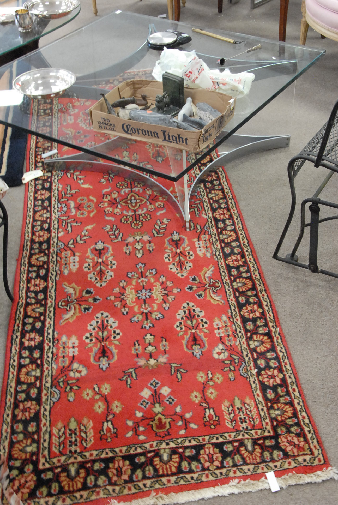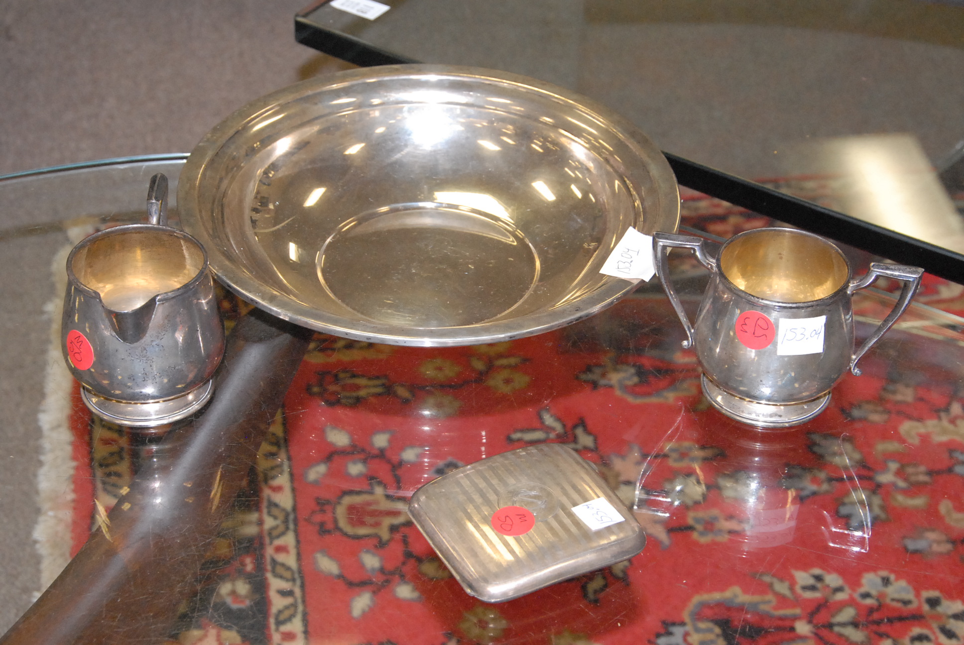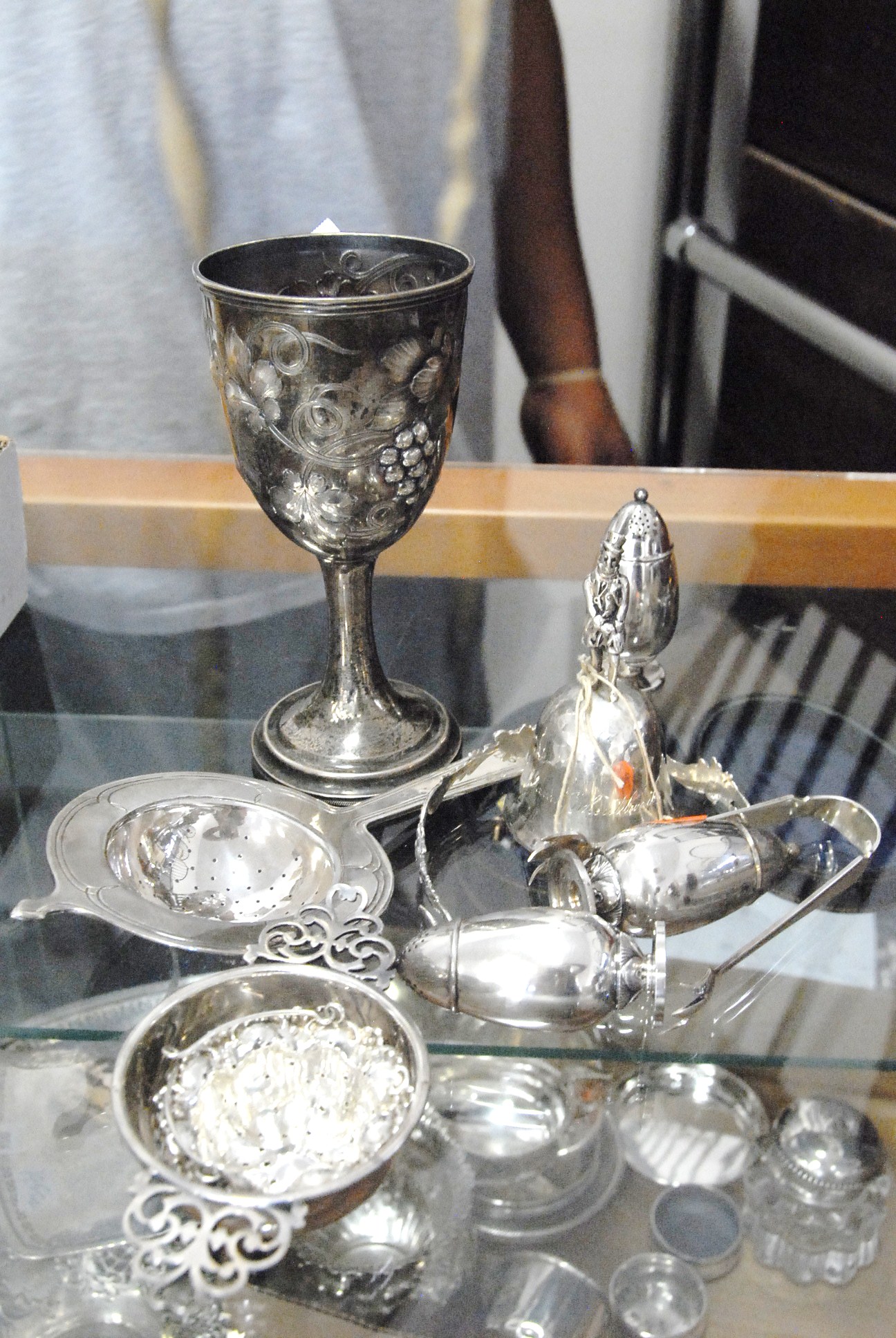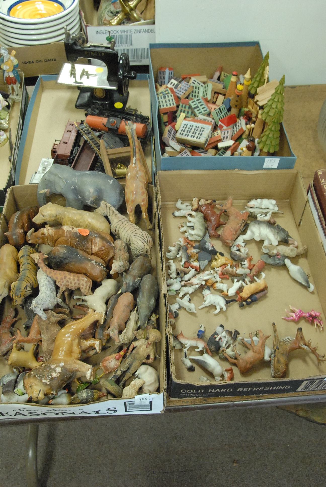 Four box lots of miscellaneous items including pewter covered cologne bottles, pair of lamps, opera glasses, couple of small lift top boxes, candle sticks, etc.