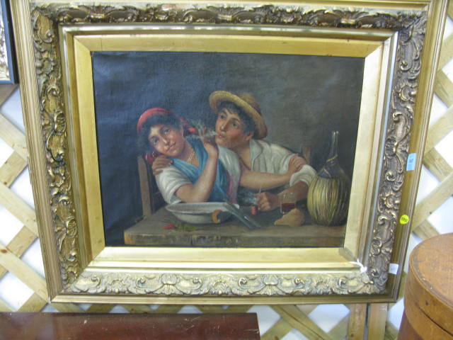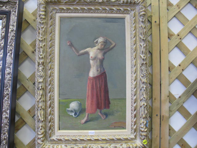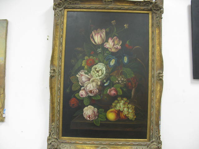Oil on canvas still life along with oil on board of sleeping baby in highchair
