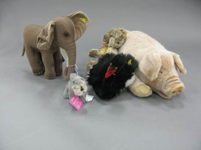 Five piece lot of Steiff to include, elephant, pig, dog, bear and bird