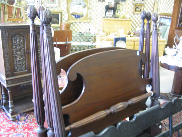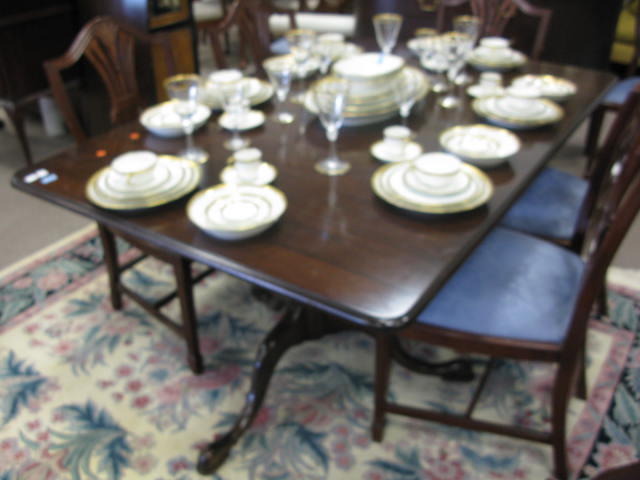 British Antique Replicas, two part mahogany dining table, including support boards and brass clips