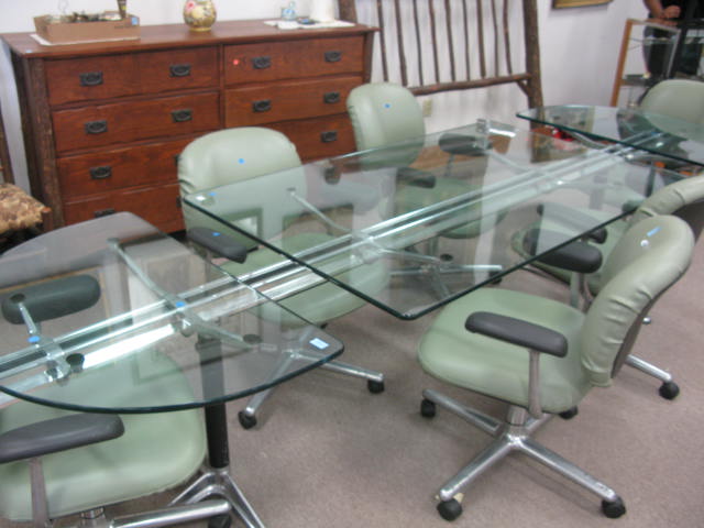 Herman Miller Bruce Burdicle extending glass top dining table / conference table
