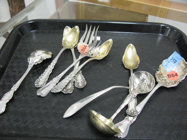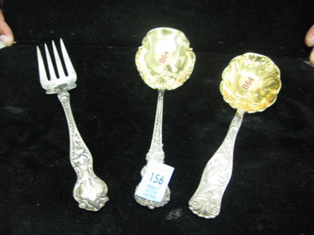 Sterling silver lot to include, two gold wash spoons and a serving fork