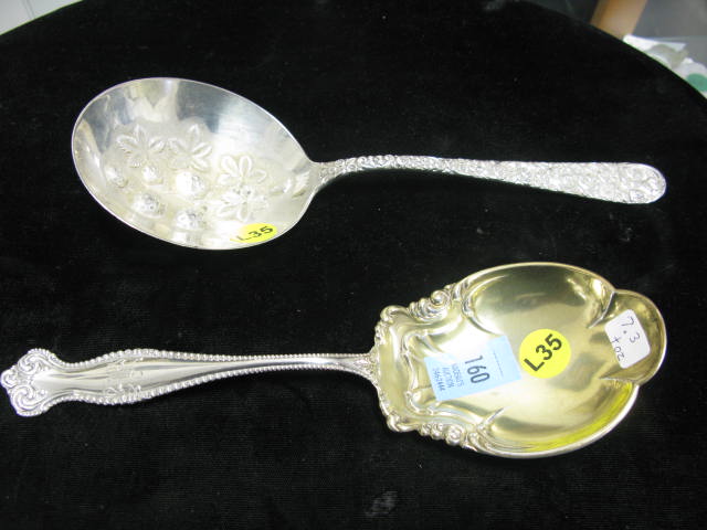 Two sterling silver serving spoons, one Jacobson and Jenkins