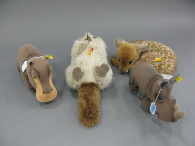 Four piece Steiff lot to include hippo, rhino, deer and squirrel