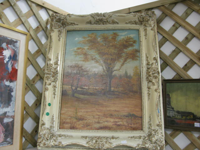 E. W. Maynard oil on canvas fall landscape, signed lower left, along with a small oil on canvas portrait