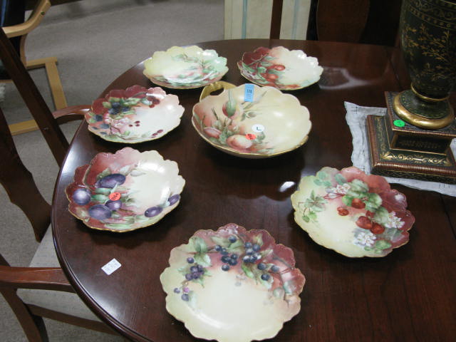 Set of hand painted china, 7 piece lot plus 12 Limoges plates